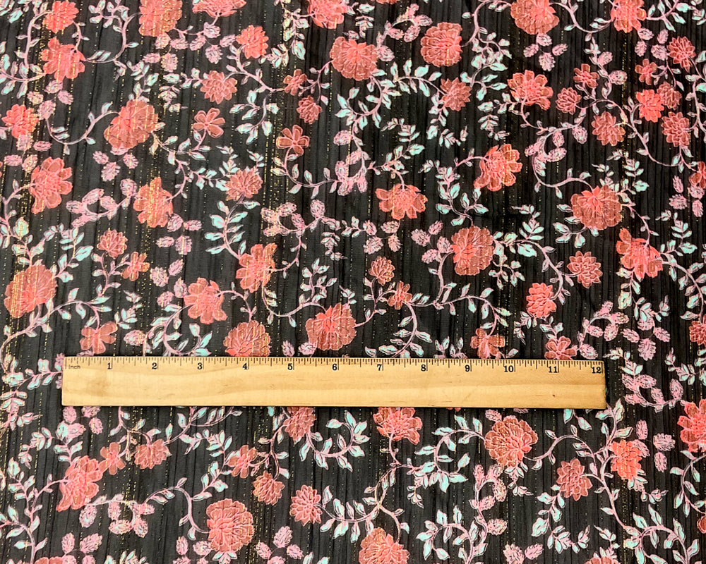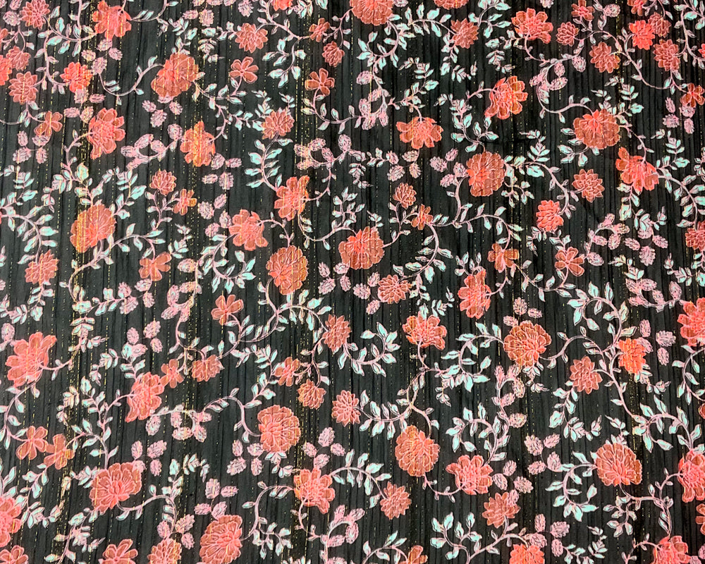 Black-Multi Poly Floral Metallic Print Yoryu Chiffon Woven Fabric