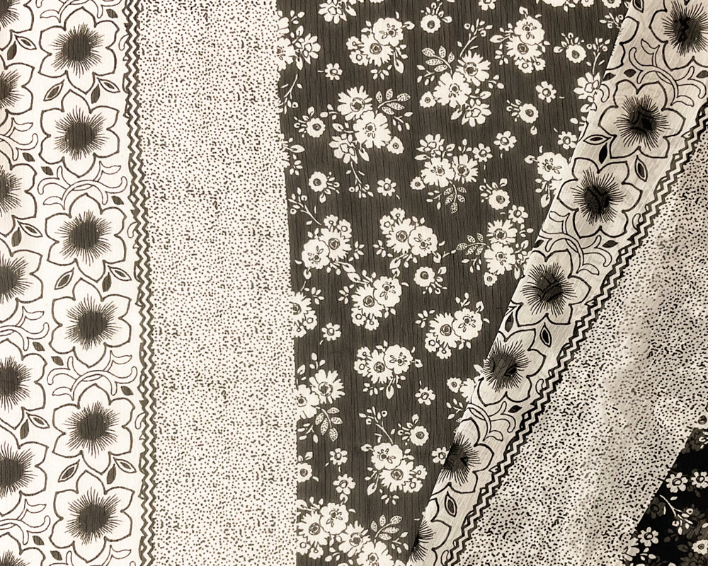 Black Poly Stripe Floral Print Crinkle Yoryu Chiffon Woven Fabric