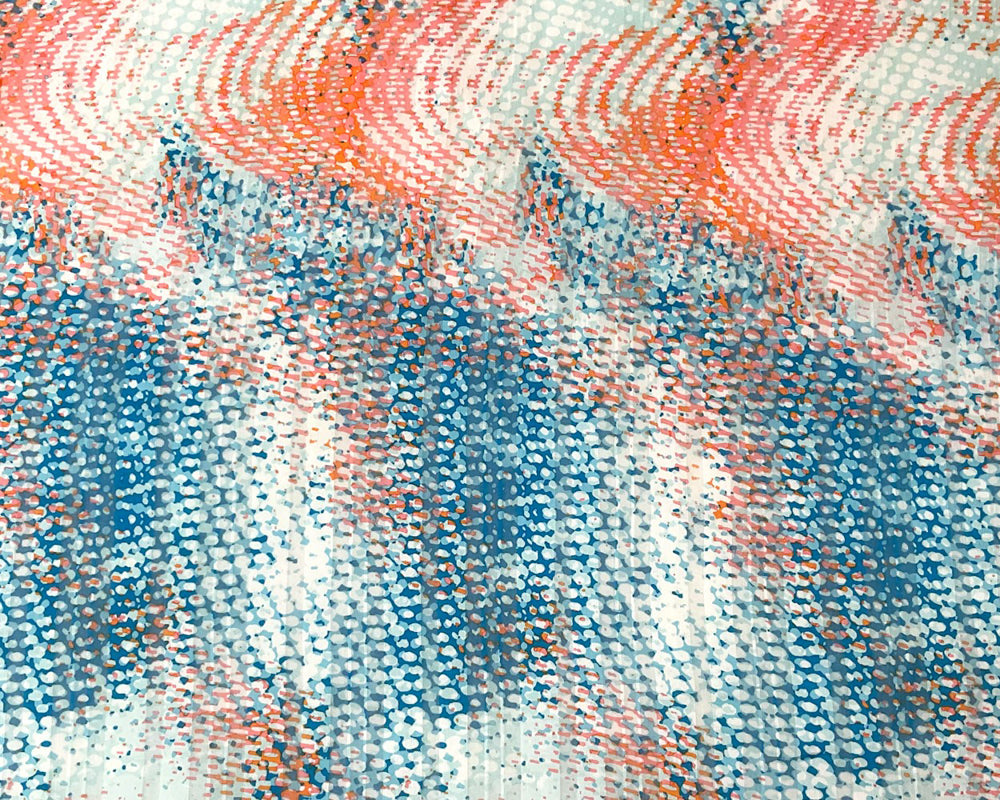 Teal-Multi Poly Abstract Print Satin Stripe Chiffon Woven Fabric