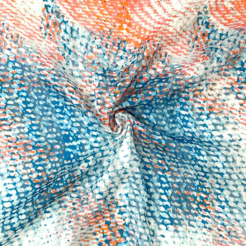 -Teal-Multi Poly Abstract Print Satin Stripe Chiffon Woven Fabric