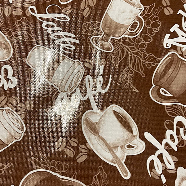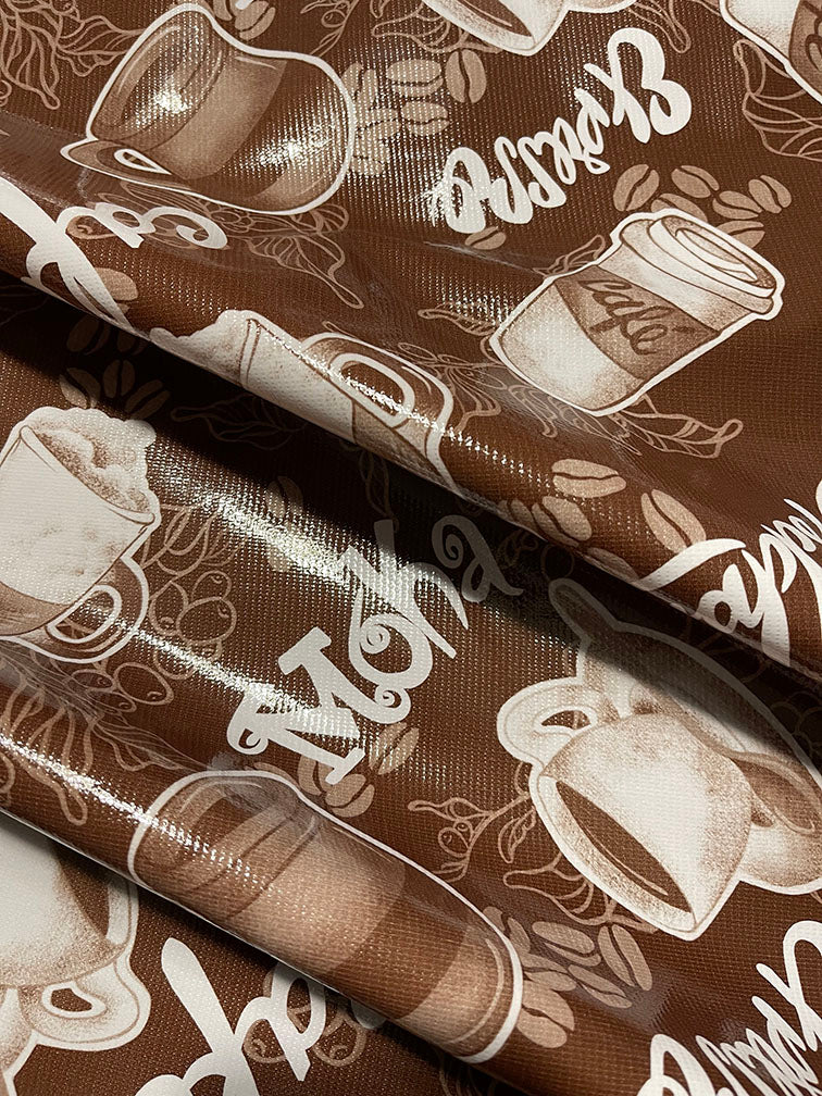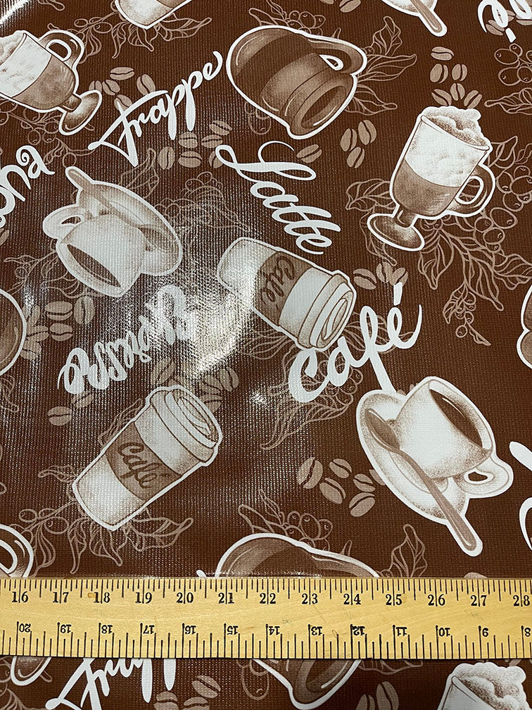 Brown and White Coffee Print Oilcloth Fabric