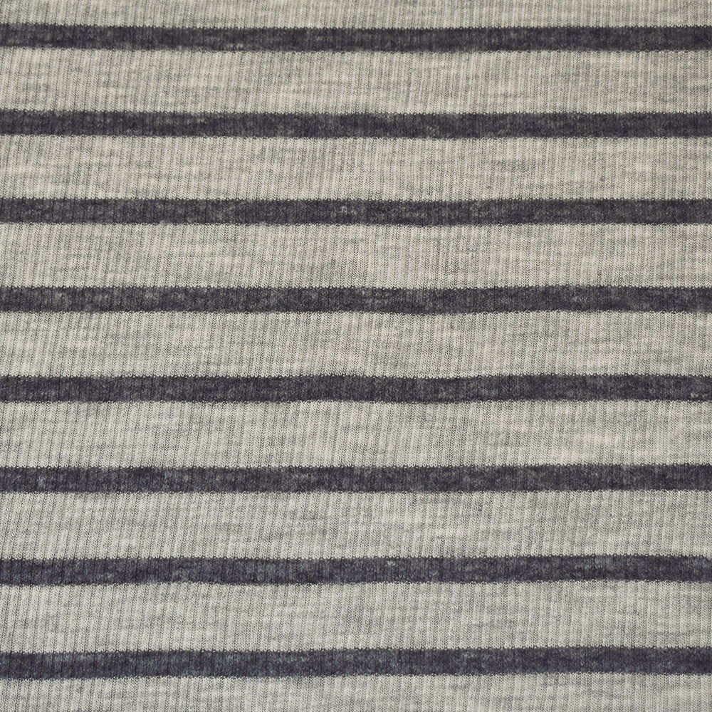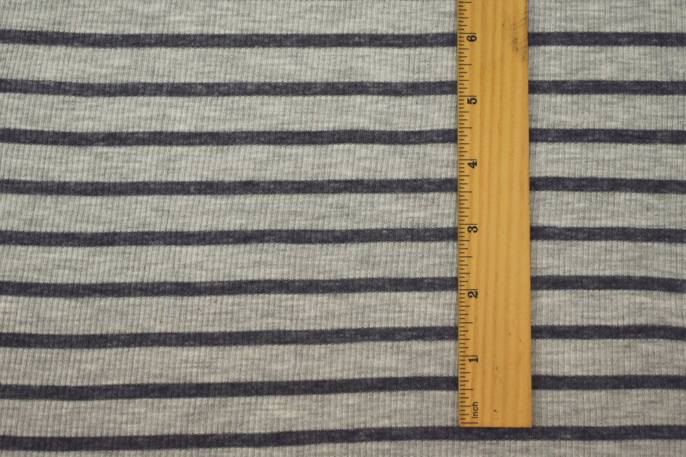 Heather Gray-Gray Rayon-Poly Stretch Spandex Stripe Rib Knit Fabric