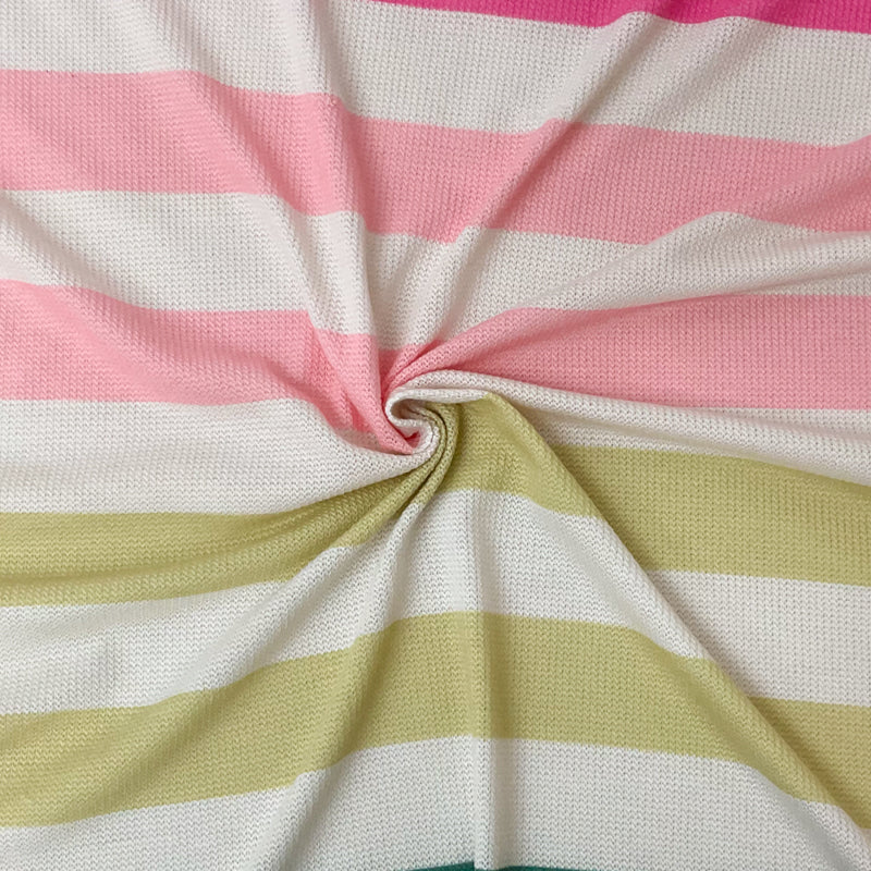 White-Pink-Multi Poly Rayon Stripe Printed Jersey Knit Fabric