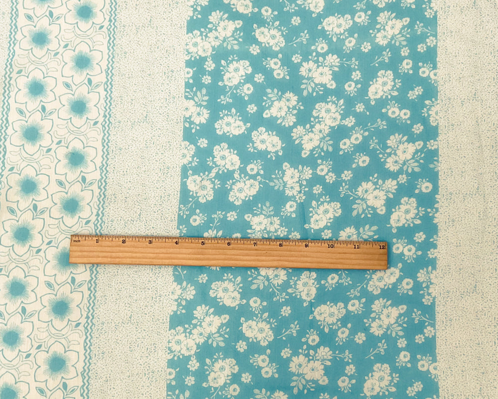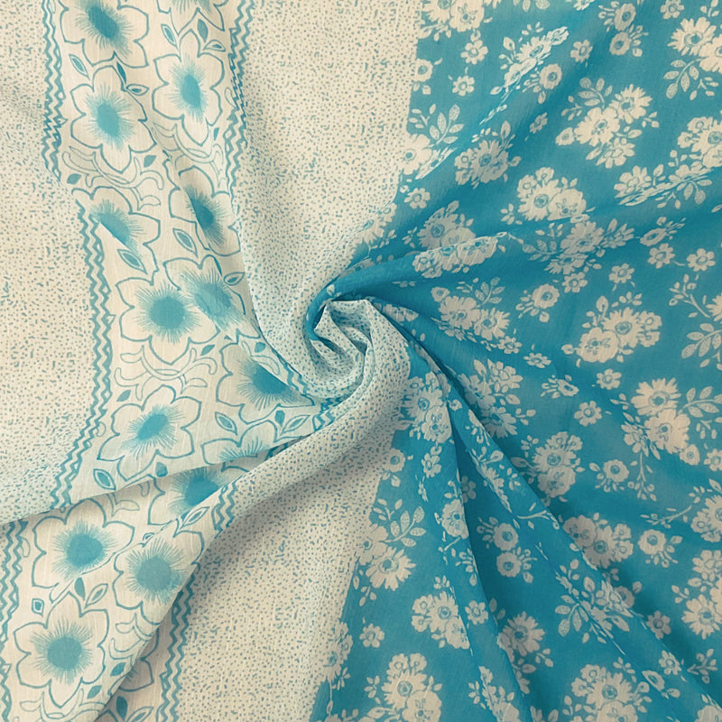 Aqua-White Poly Stripe Floral Printed Yoryu Chiffon Woven Fabric
