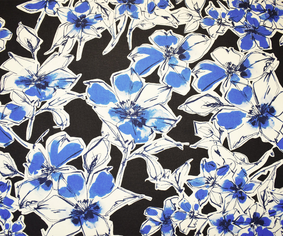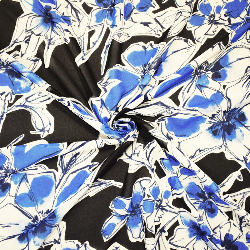 Black-Blue-Multi Poly Floral Printed Chiffon Woven Fabric