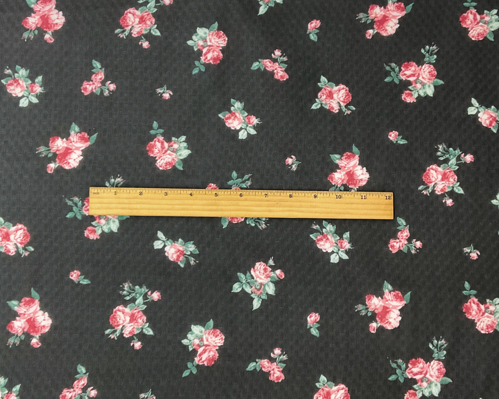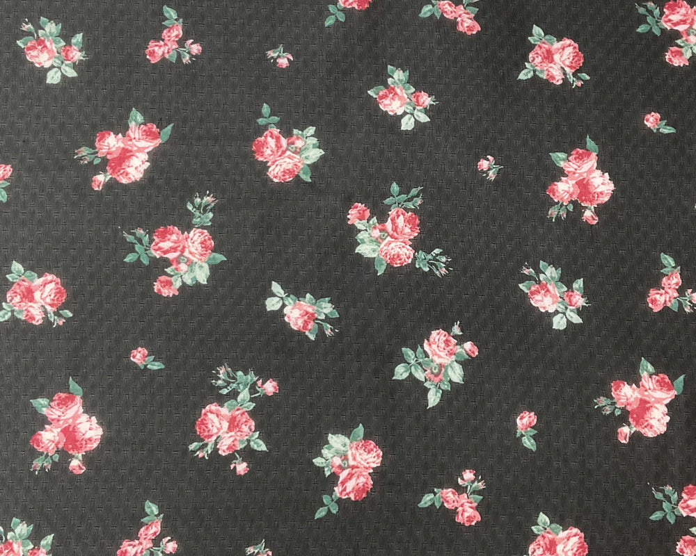 Black-Red-Multi Poly Floral Printed Dobby Chiffon Woven Fabric