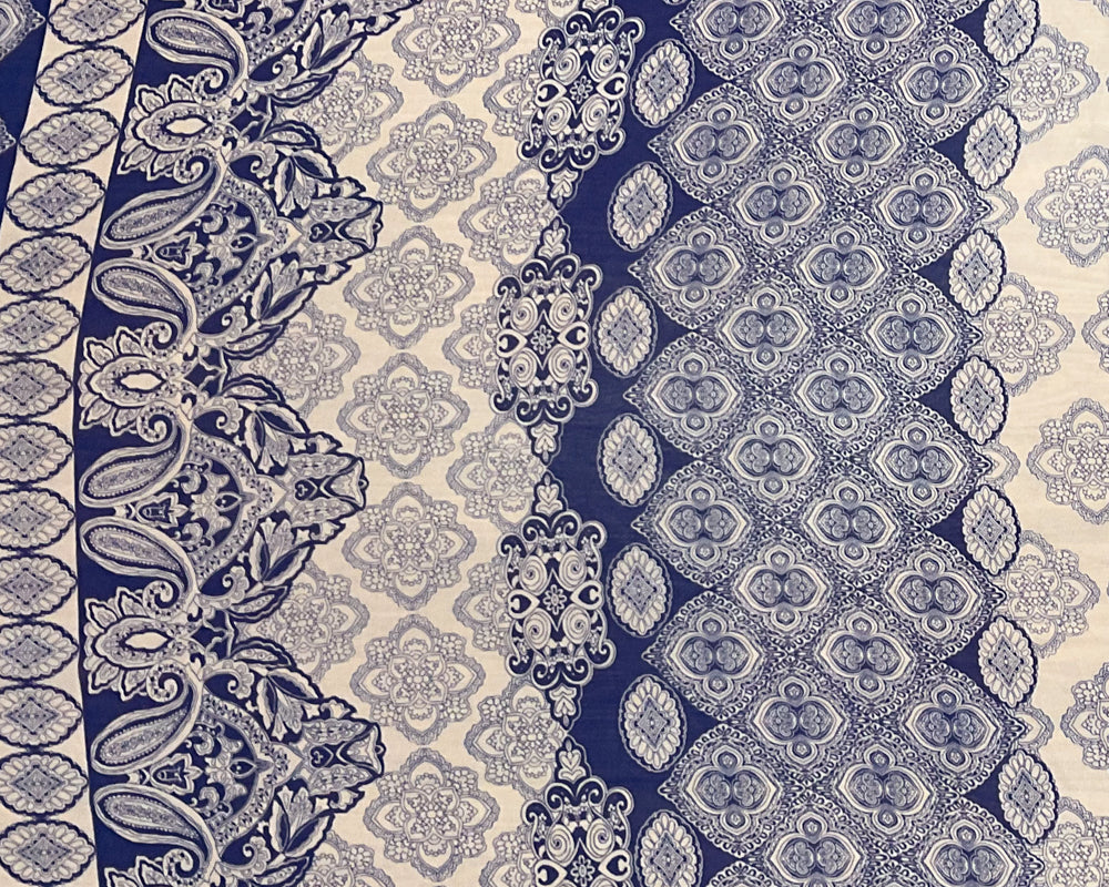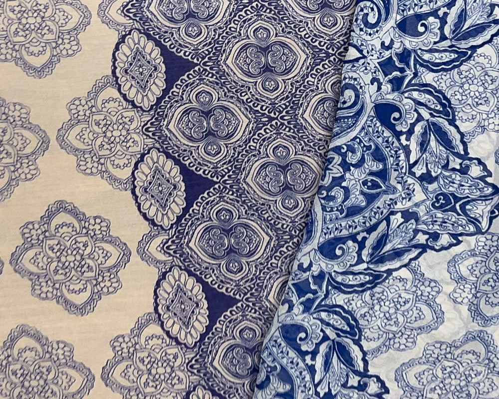 Blue-Beige Poly Paisley Printed Silky Pebble Chiffon Woven Fabric