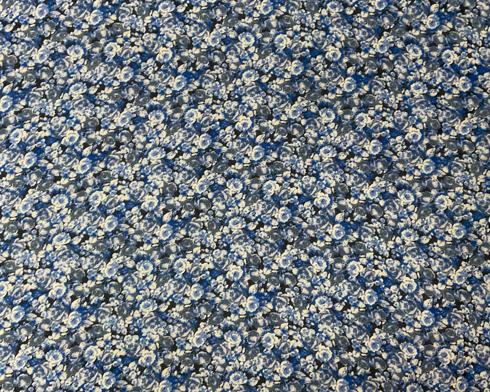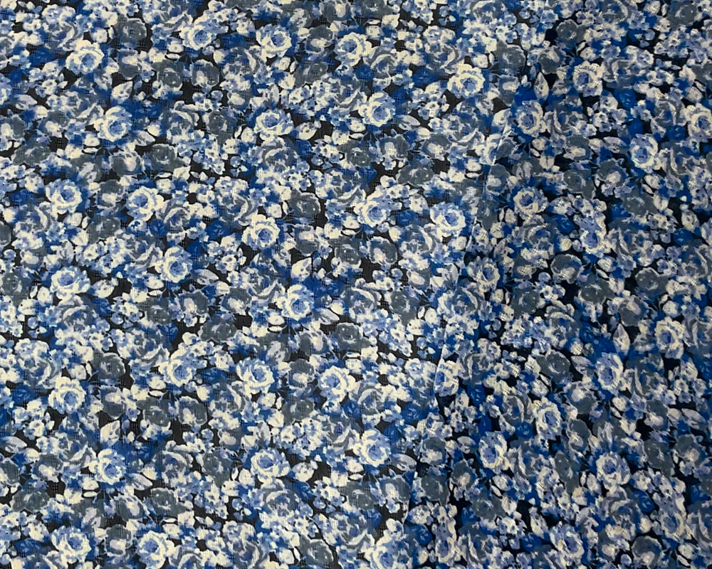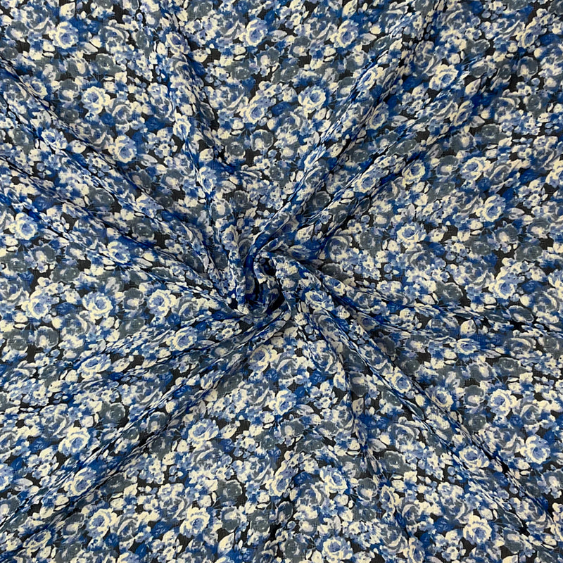 Blue-Black-Multi Poly Floral Printed Dobby Chiffon Woven Fabric