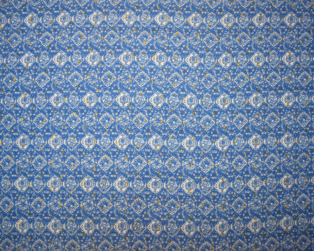 Blue-Multi Diamond Floral Printed Metallic Crinkle Yoryu Chiffon Woven Fabric