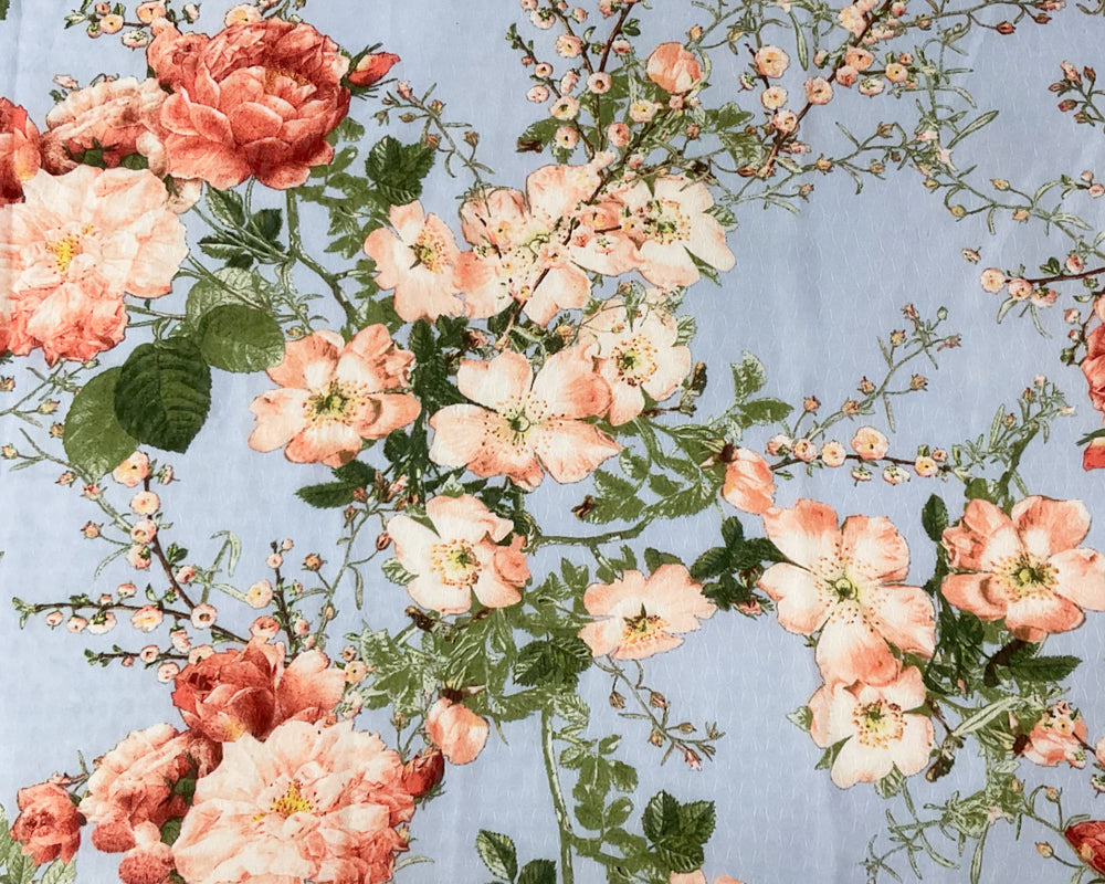 Blue-Multi Poly Floral Printed Ogee Dobby Chiffon Woven Fabric