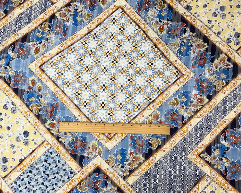 Blue-Multi Poly Floral Printed Satin Stripe Chiffon Woven Fabric