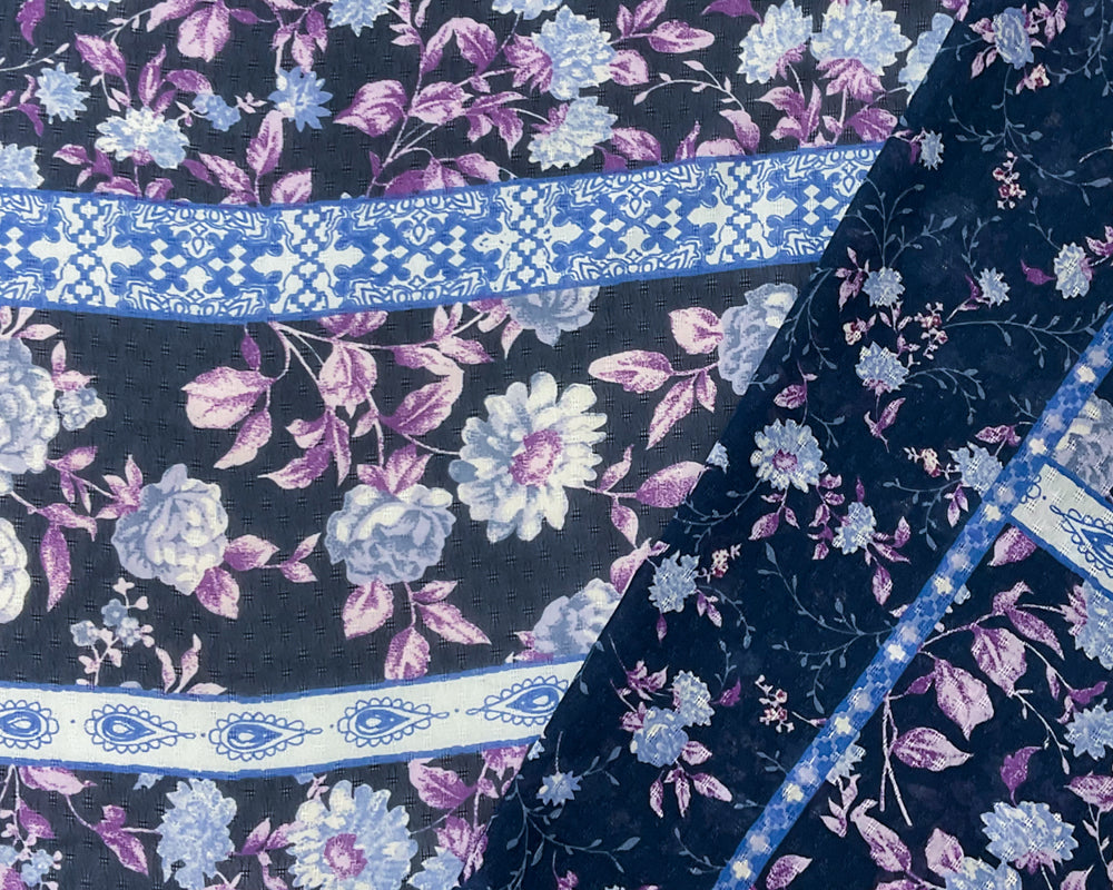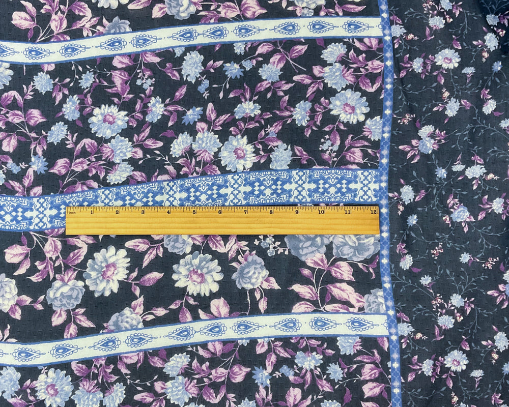Blue-Multi Poly Stripe Floral Border Print Dobby Chiffon Woven Fabric