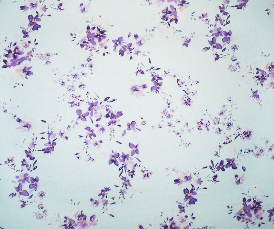 -Blue-Purple-Multi Poly Floral Printed Chiffon Woven Fabric