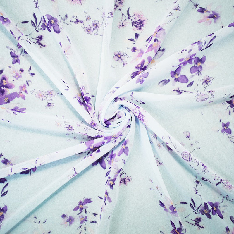 Blue-Purple-Multi Poly Floral Printed Chiffon Woven Fabric