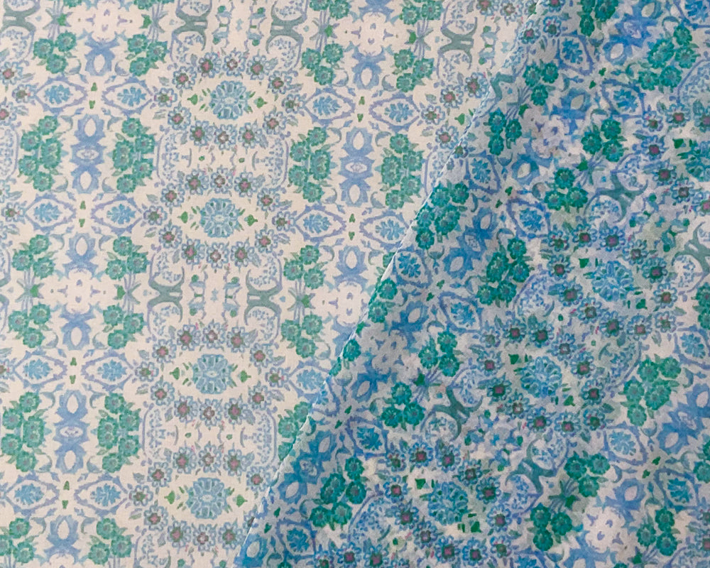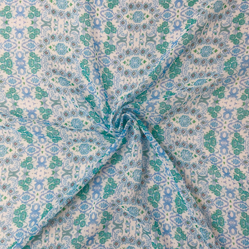 Blue-White-Multi Poly Abstract Floral Printed Chiffon Woven Fabric