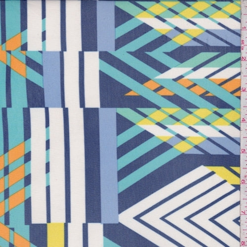 Blue/White Multi Stripe/Chevron Power Mesh Fabric