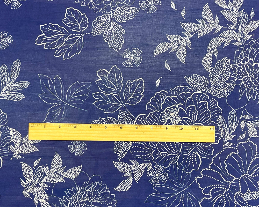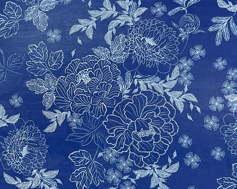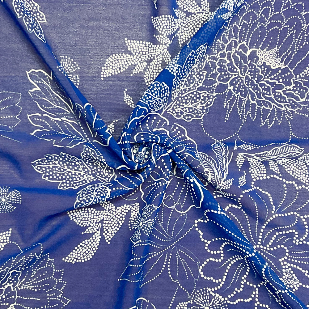 Blue-White Poly Abstract Printed Chiffon Woven Fabric
