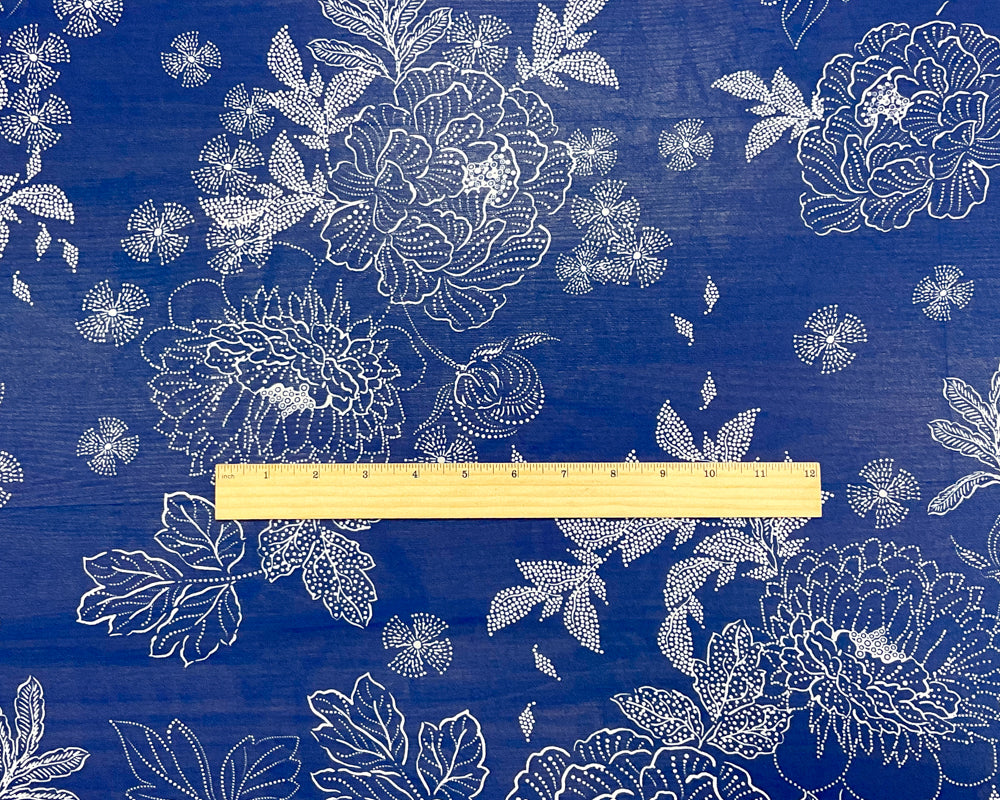 Blue-White Poly Floral Printed Chiffon Woven Fabric
