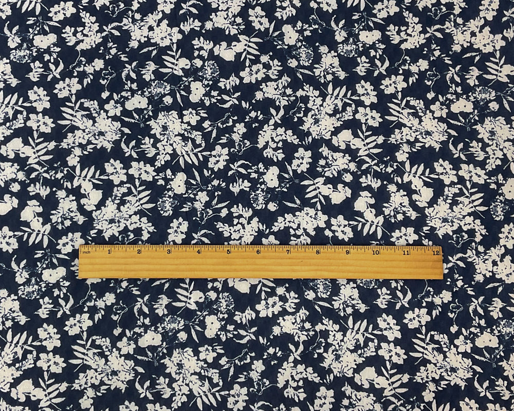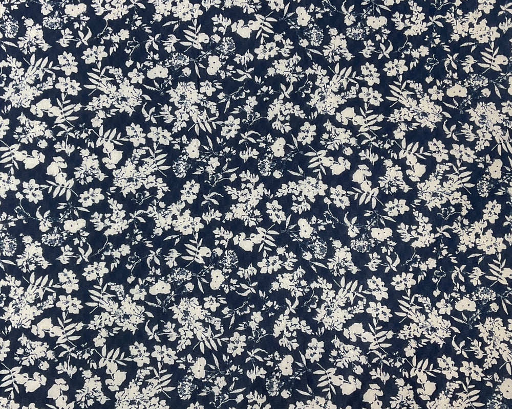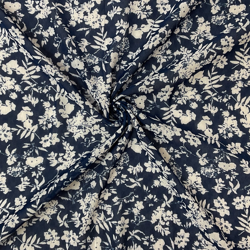 Blue-White Poly Floral Printed Ogee Shape Dobby Chiffon Woven Fabric