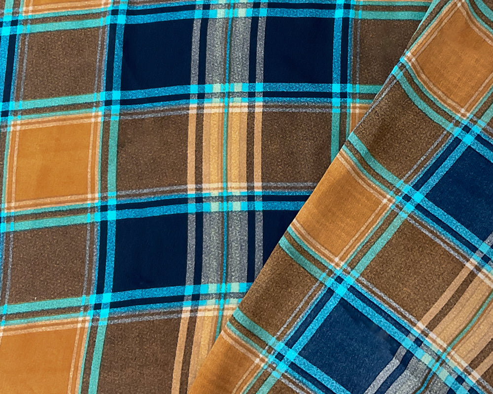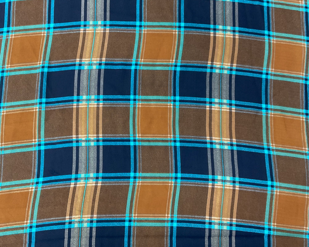 Brown-Blue Beige Poly Plaid Printed Georgette Woven Fabric