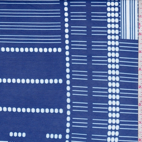 Ocean Blue/White Linear Dot Block Power Mesh Fabric