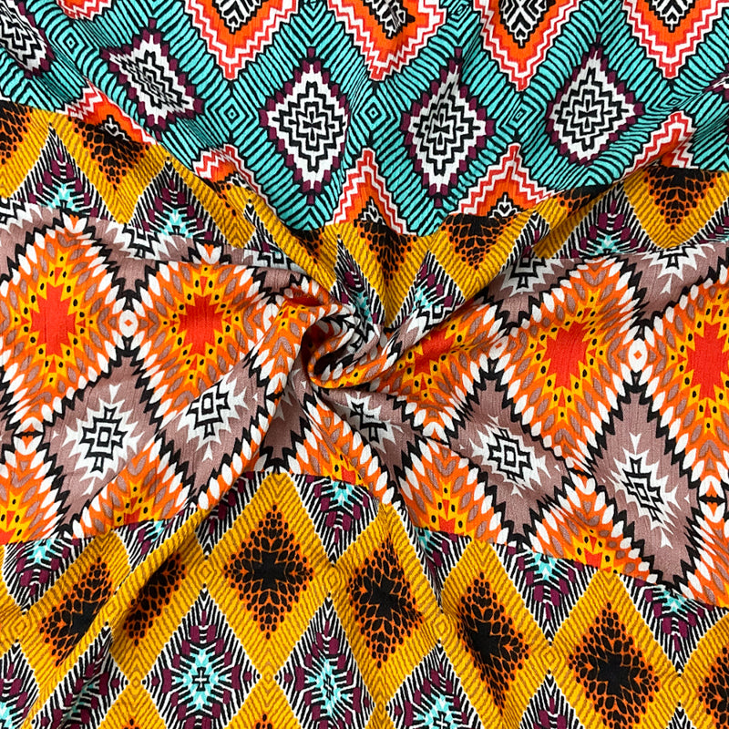 Orange-Multi Multi Cotton Aztec Printed Gauze Woven Fabric