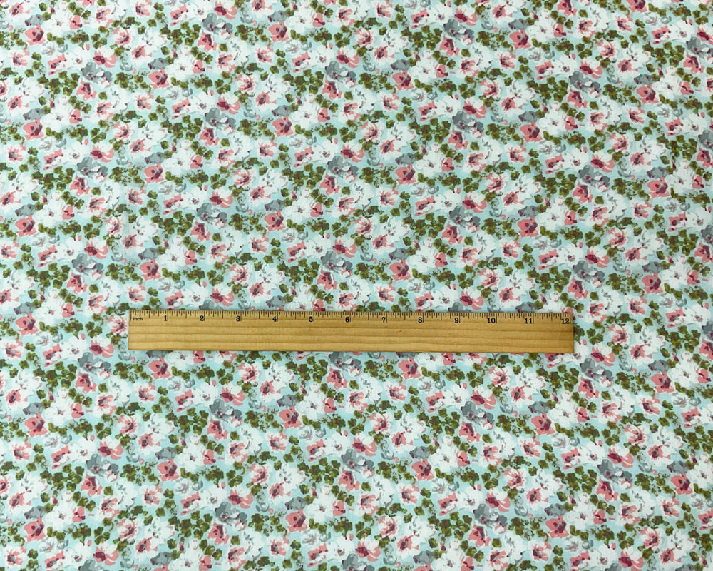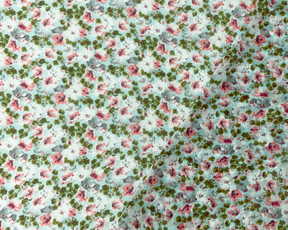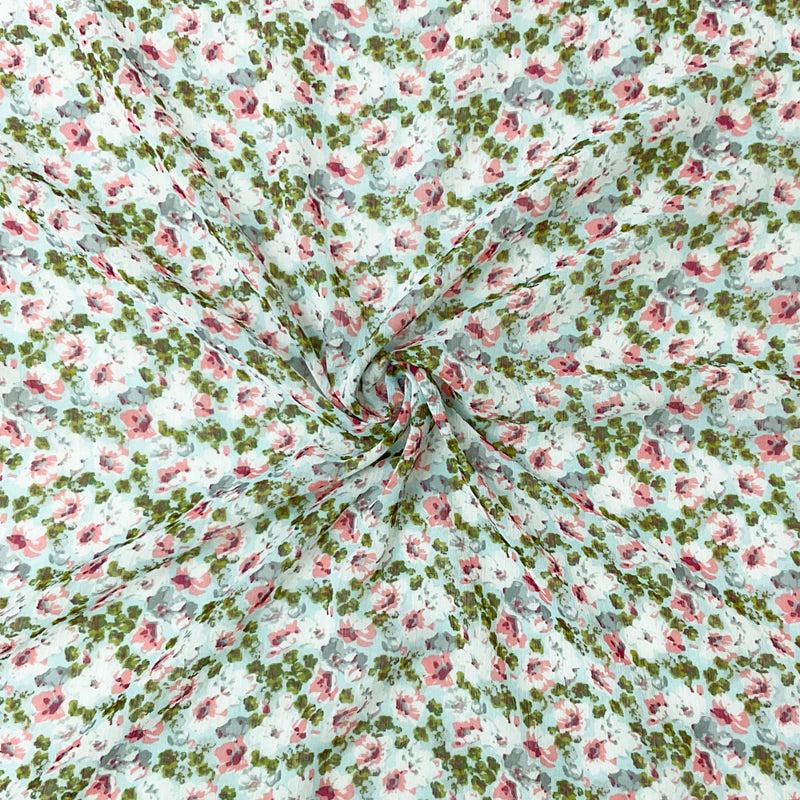 -Blue-Pink-Multi Poly Floral Printed Crinkle Yoryu Chiffon Woven Fabric