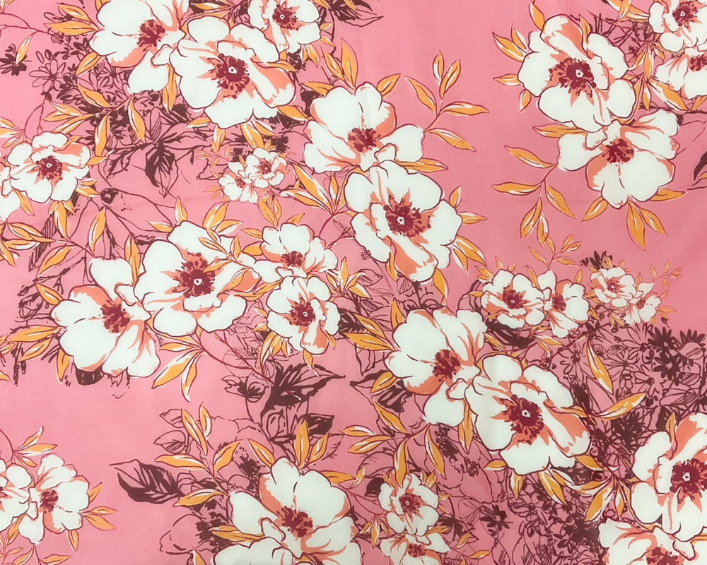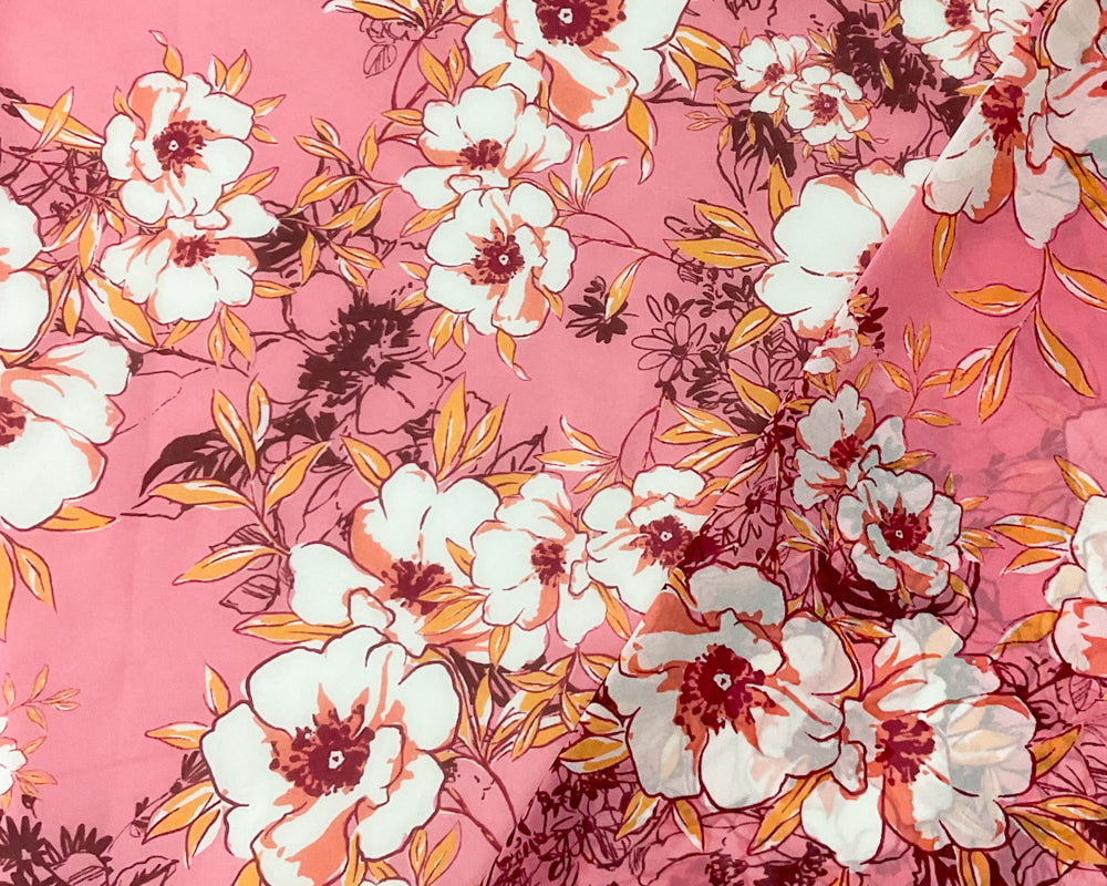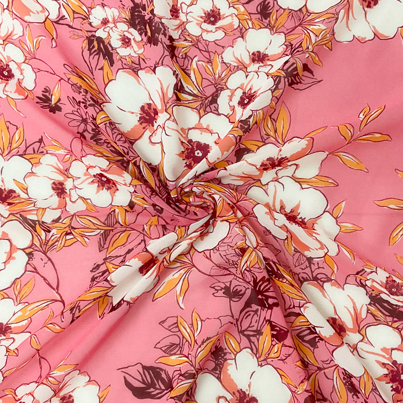 Pink-White-Multi Poly Floral Printed Chiffon Woven Fabric