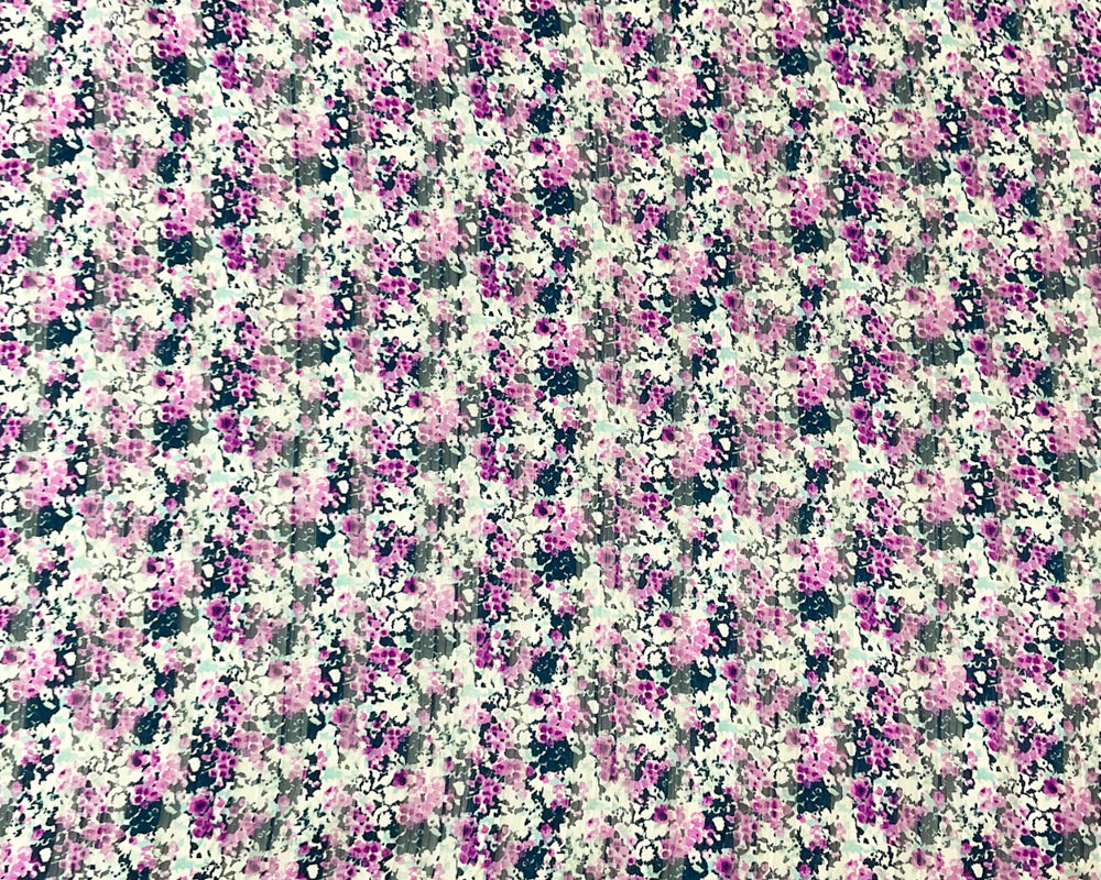 Purple-Multi Poly Floral Print Satin Stripe Chiffon Woven Fabric