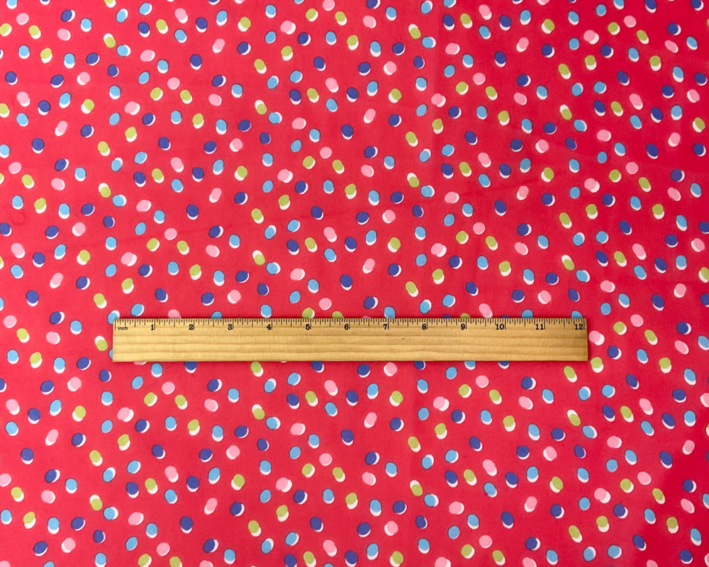 Red-Blue-Multi Poly Dot Printed Chiffon Woven Fabric