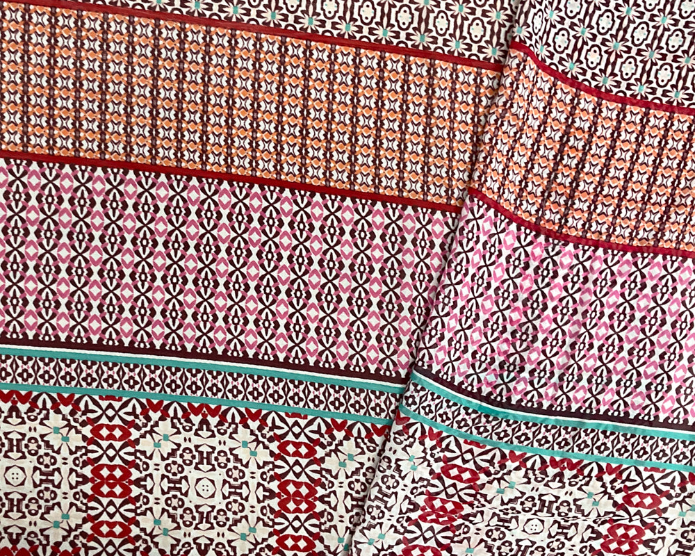 Red-Pink-Multi Poly Stripe Aztec Printed Chiffon Woven Fabric