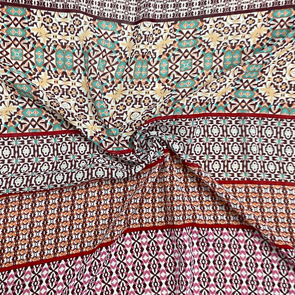 -Red-Pink-Multi Poly Stripe Aztec Printed Chiffon Woven Fabric