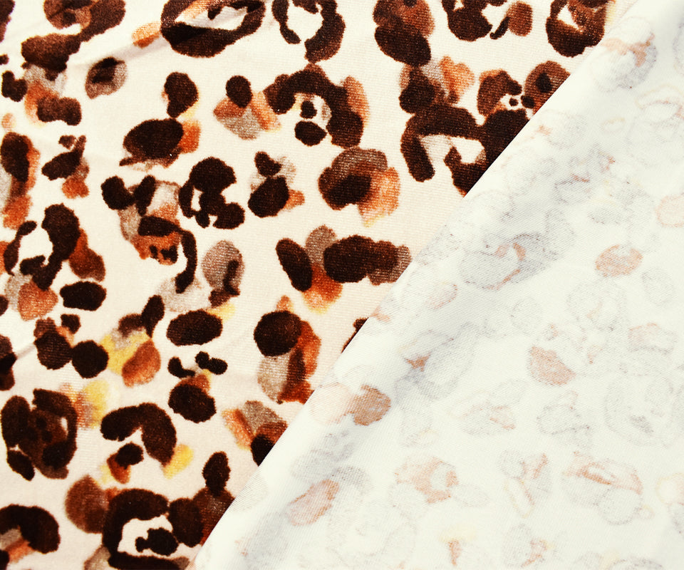 Beige-Brown-Multi Poly Abstract Leopard Print Velvet Knit Fabric