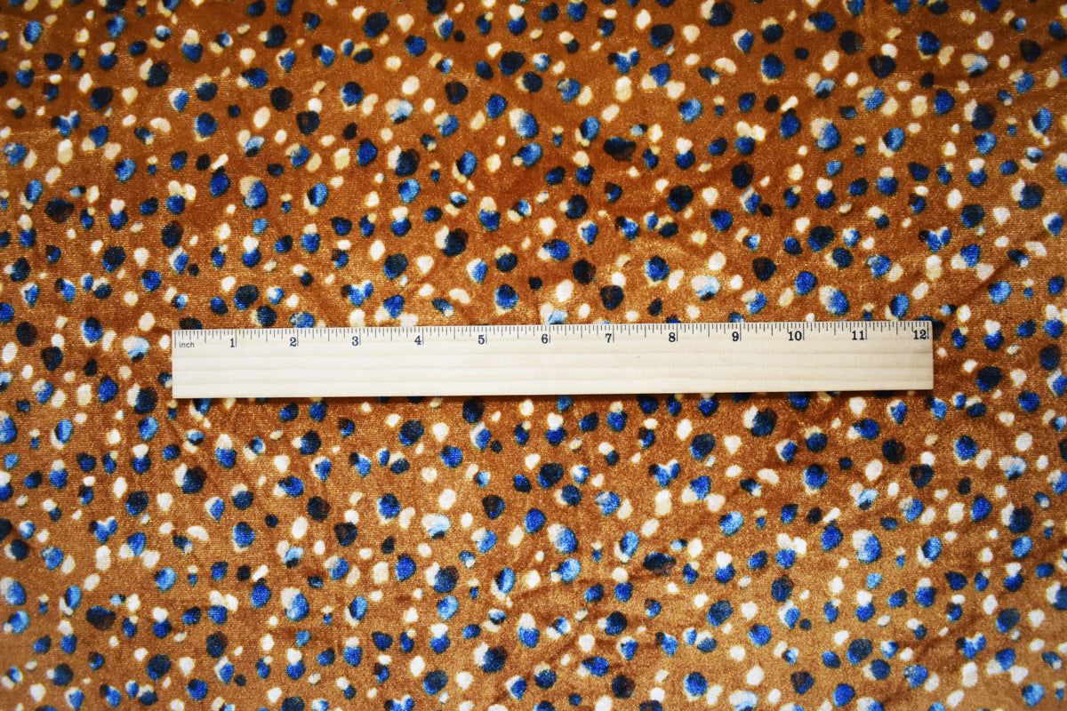 Brown-Multi Poly Stretch Abstract Printed Velvet Knit Fabric