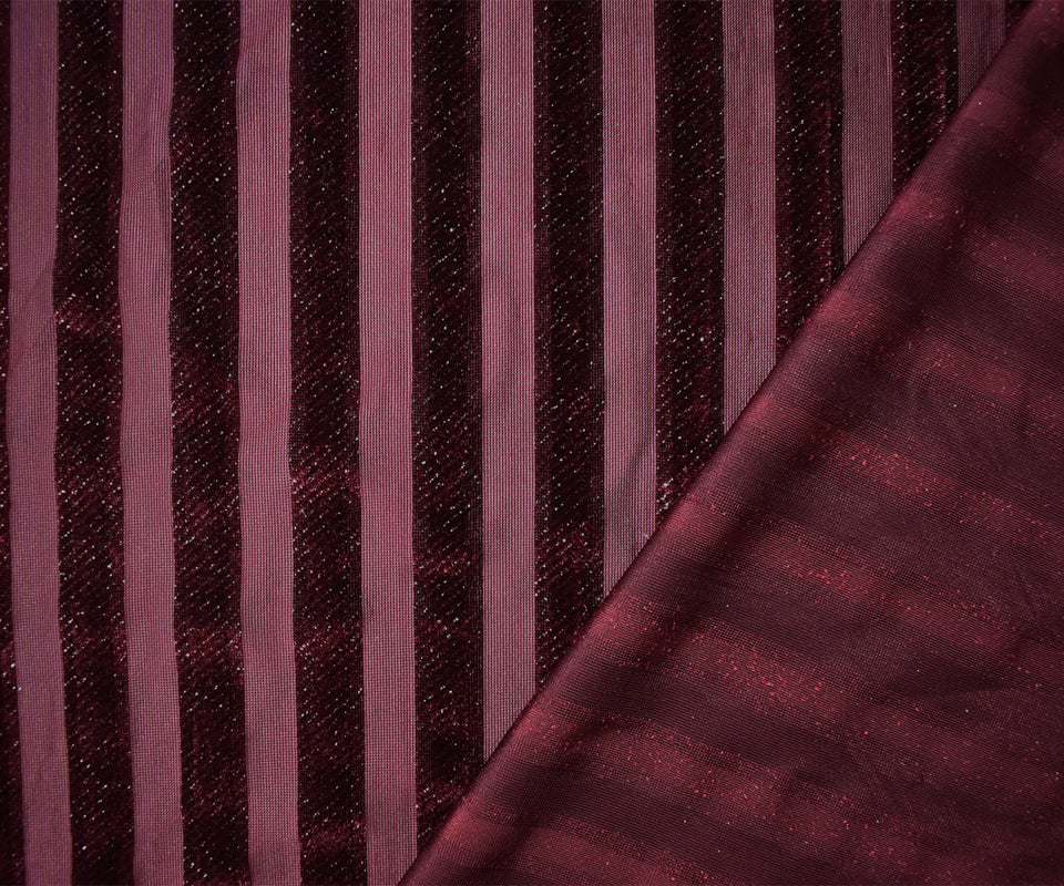 Red-Sliver Poly Burnout Stripe Stretch Velvet Mesh Knit Fabric
