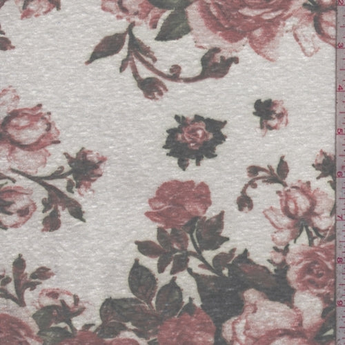 Ivory/Terra Cotta Rose Slub Jersey Knit Fabric