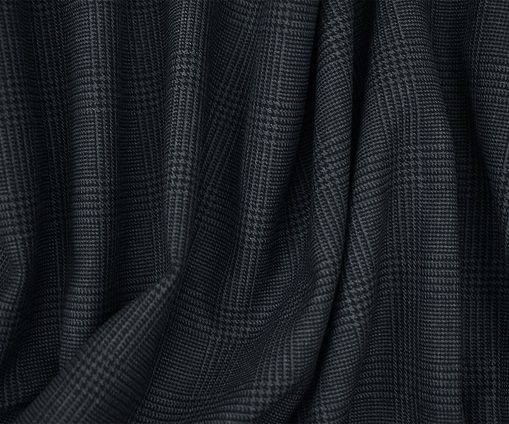 3 YD PC-Dark Navy-Gray Poly Wool Blend Glen Plaid Twill Suiting
