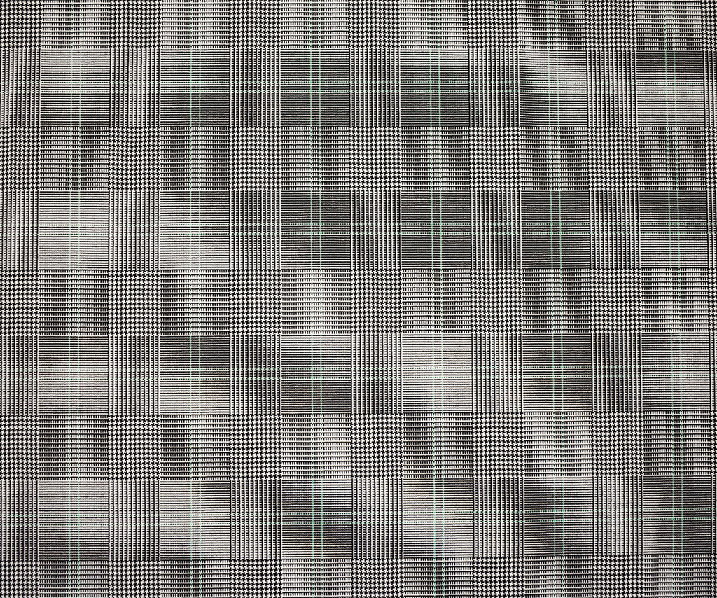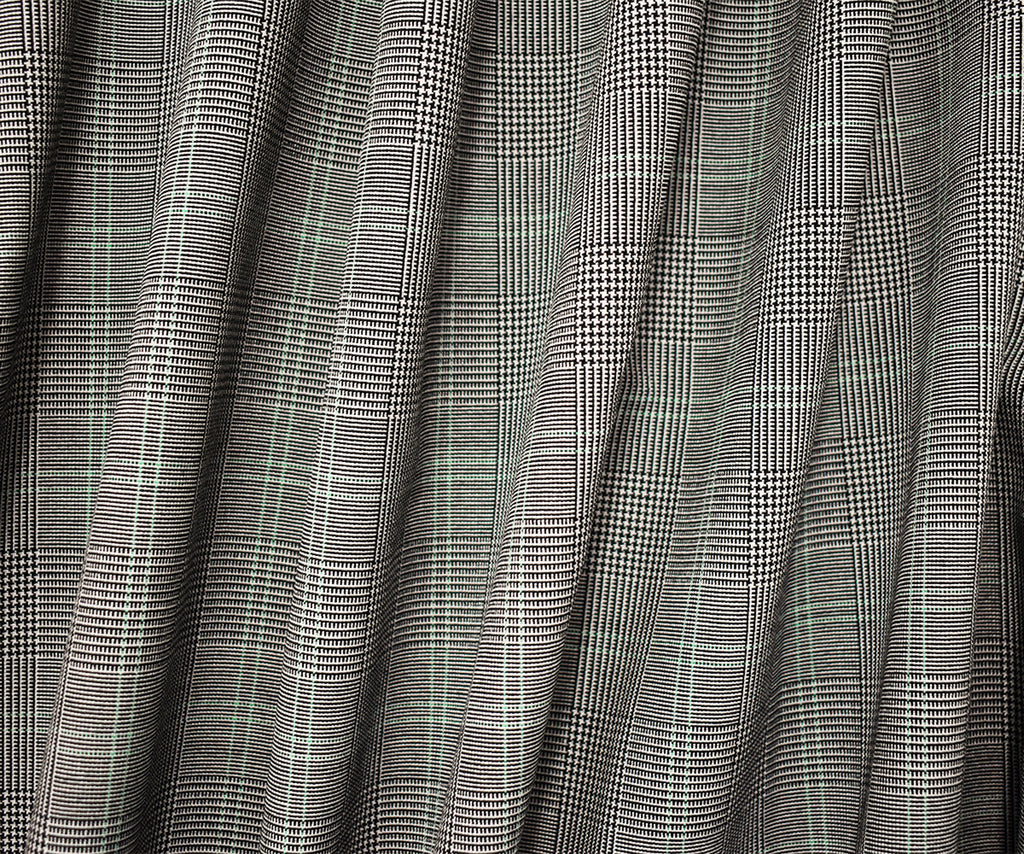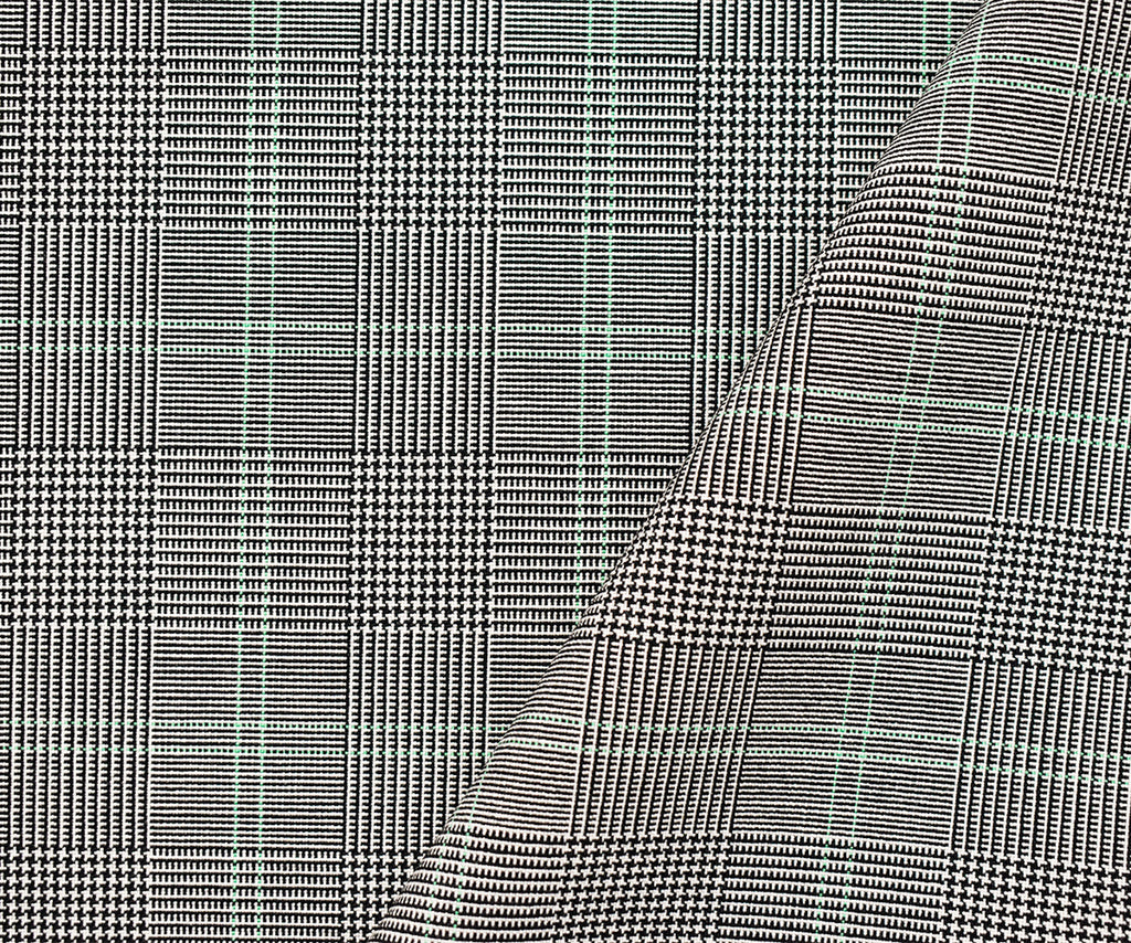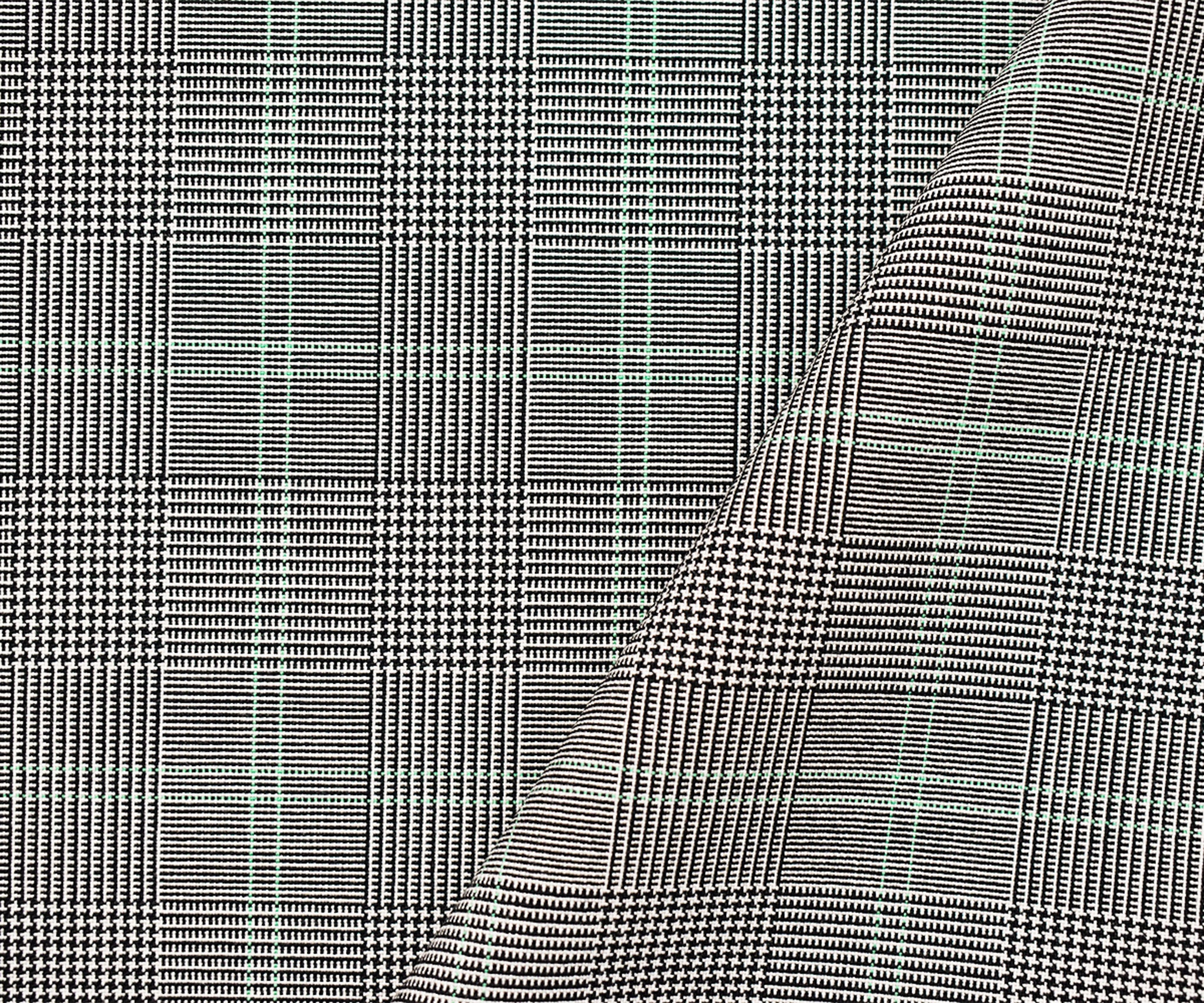Black-Gray-Green Wool-Polyester Glen Plaid Woven Shirting Fabric