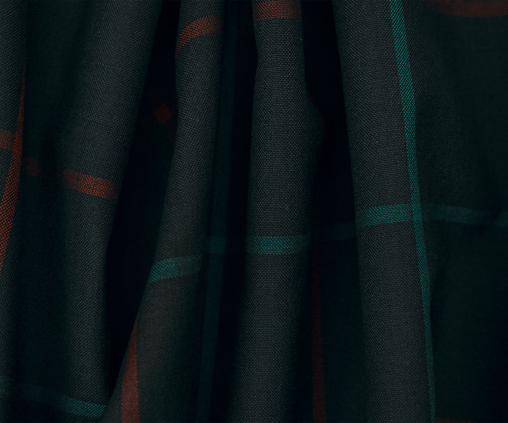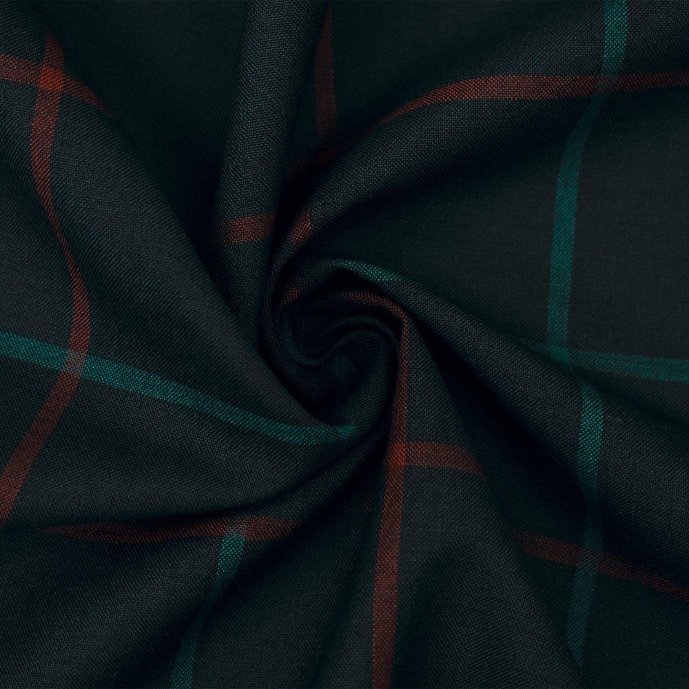 Black-Green-Red Wool Polyester Check Woven Shirting Fabric