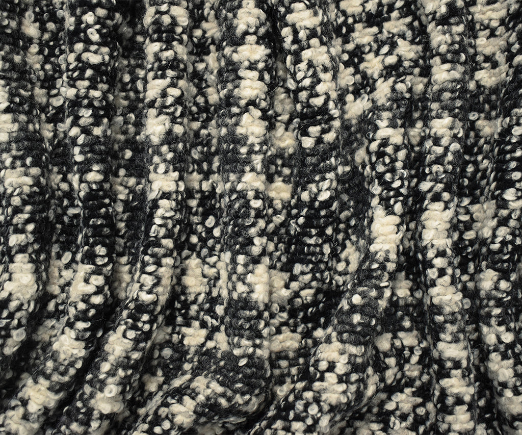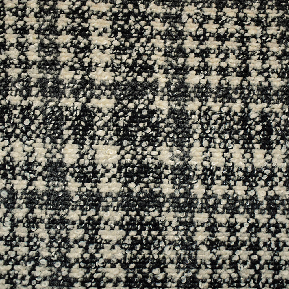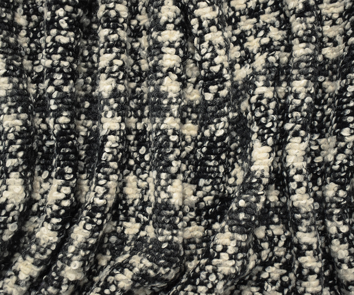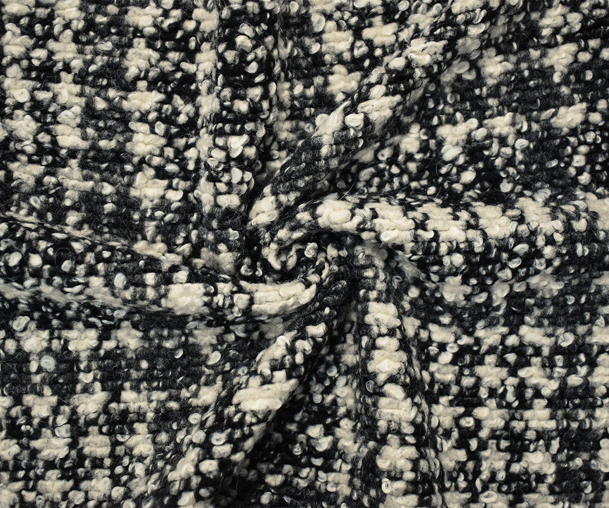 Black-Multi Boiled Italian Wool-Poly Abstract Plaid Boucle Knit Coating Fabric