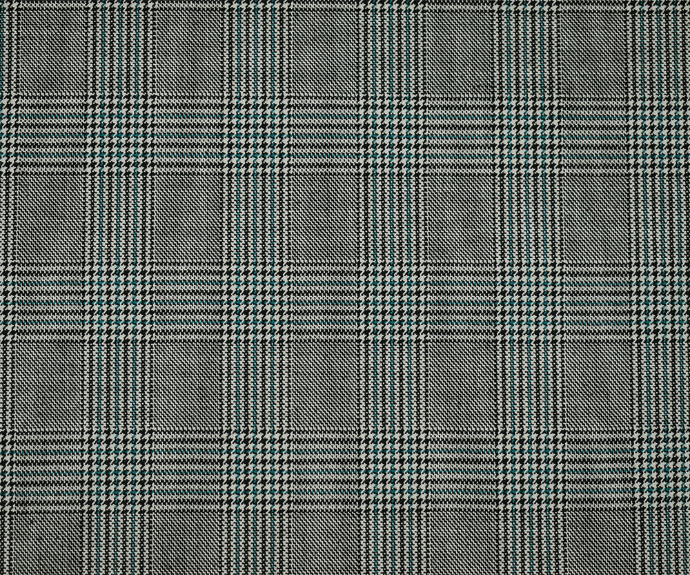 Black-Off-White-Green Poly-Wool Glen Plaid Check Suiting Woven Fabric