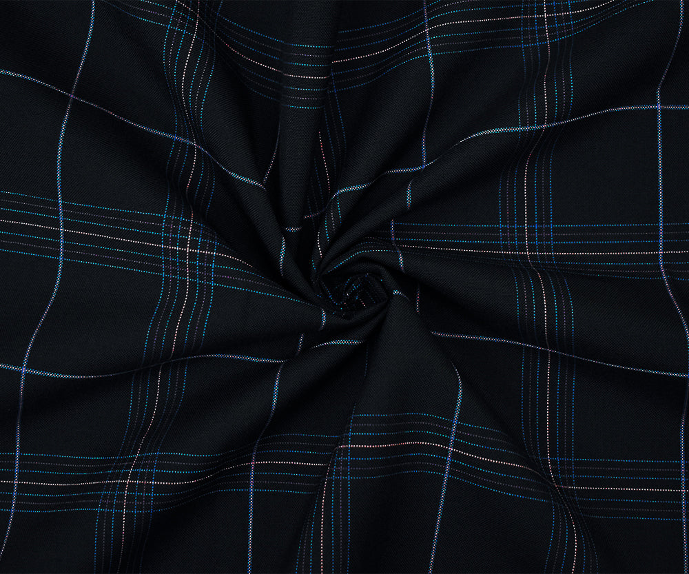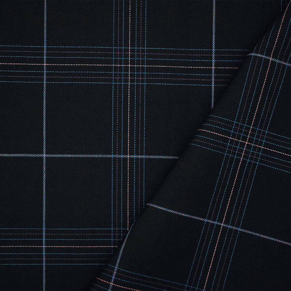Black-Pink-Multi Poly-Wool Plaid Shirting Woven Suiting Fabric
