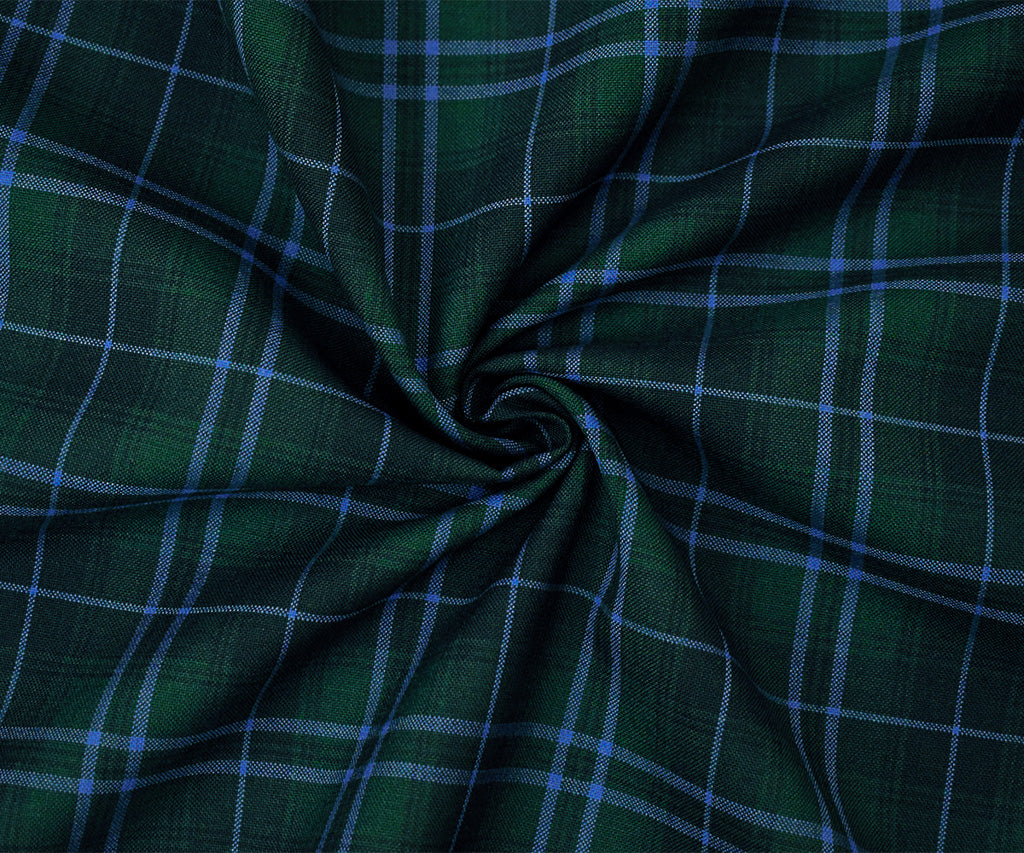 Blue-Green-Multi Poly Wool Plaid Check Shirting Woven Fabric