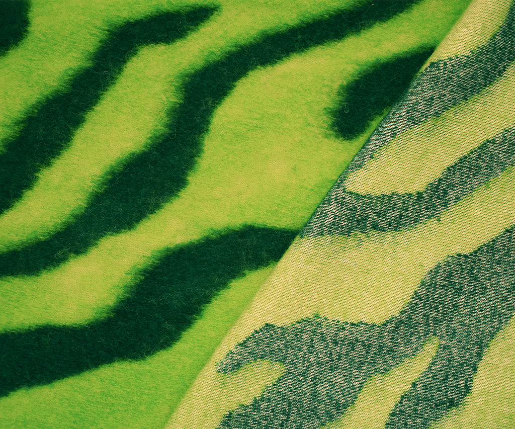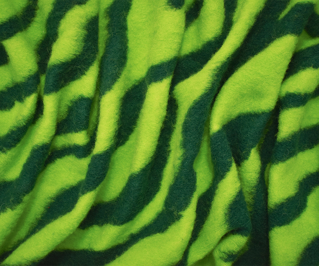 Bright Green Italian Boiled Wool-Poly Zebra Knit Coating Fabric