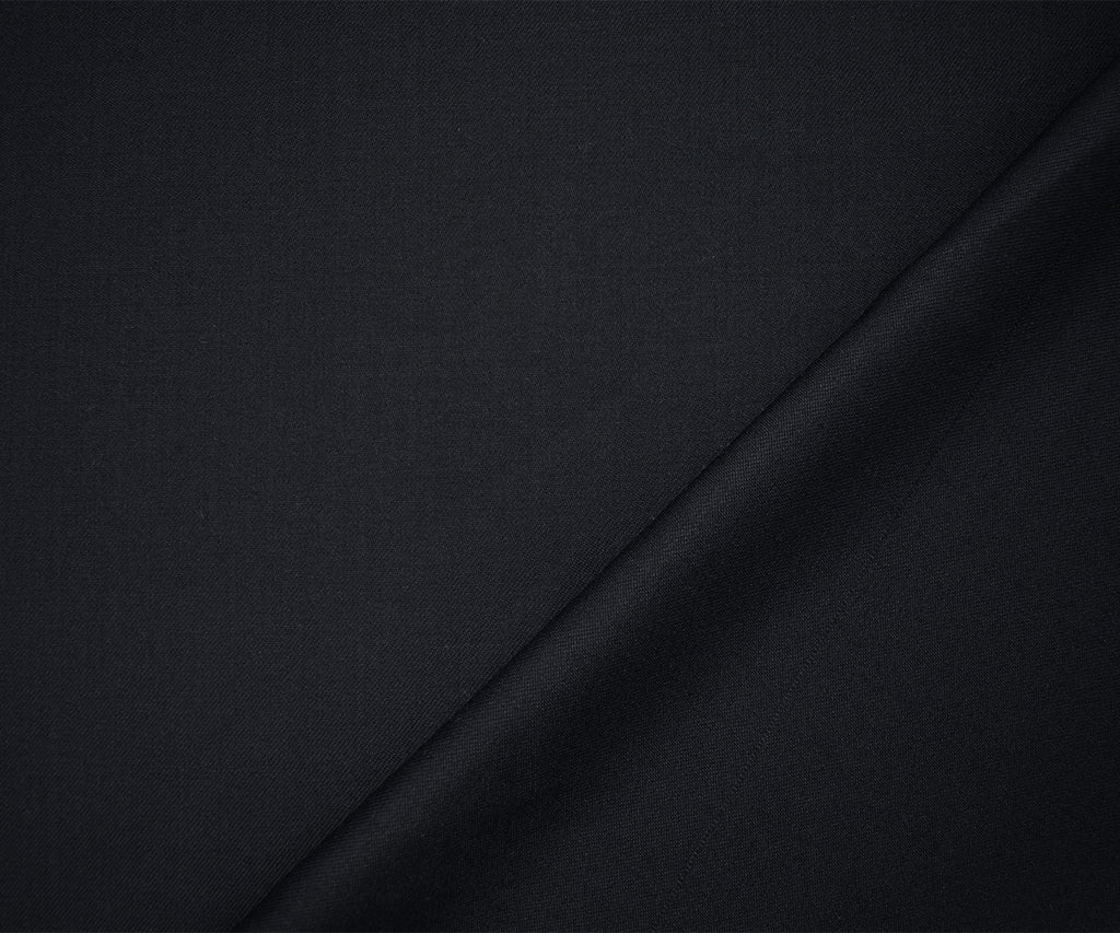 Deep Midnight Blue Wool Cotton Solid Twill Woven Suiting Fabric
