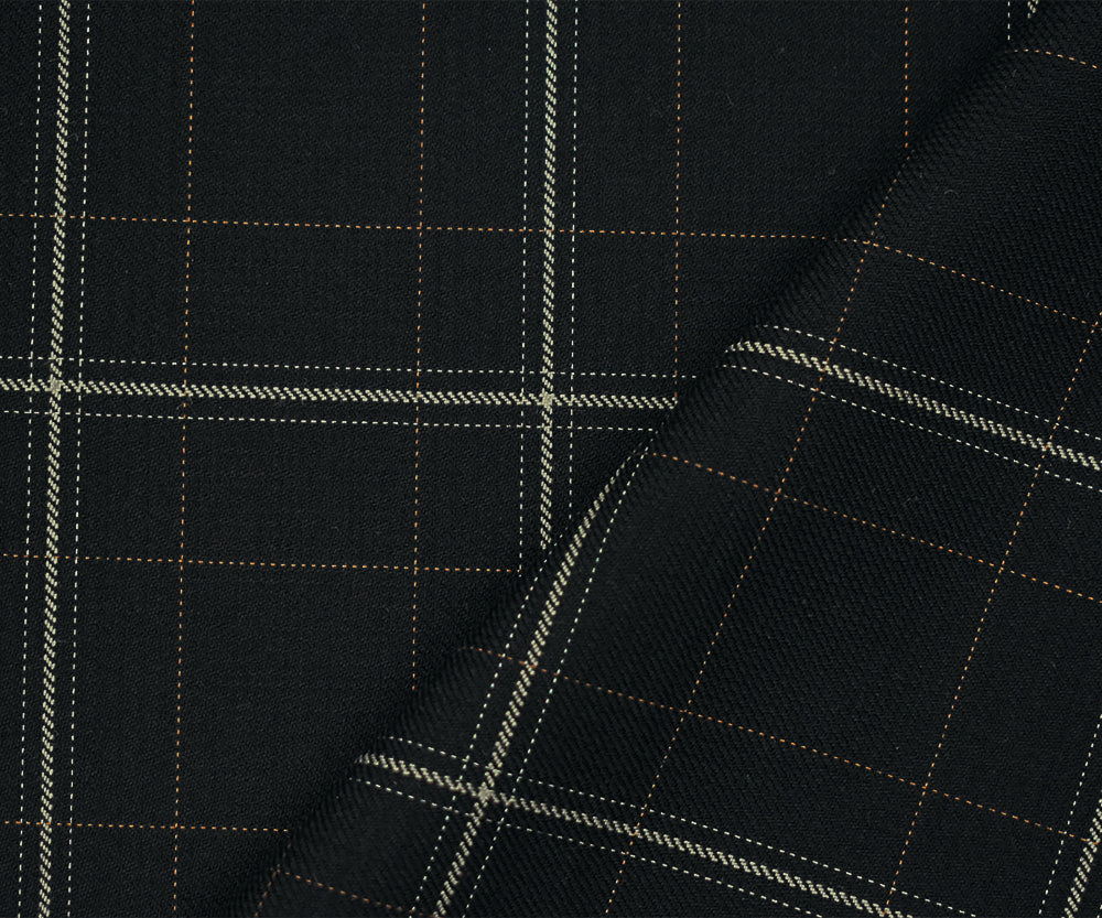 Black-Gray-Brown Wool Polyester Grid Plaid Twill Suiting Fabric