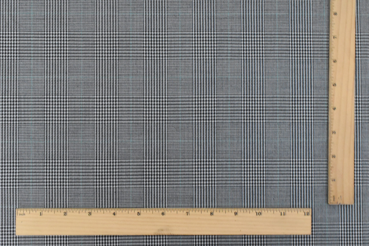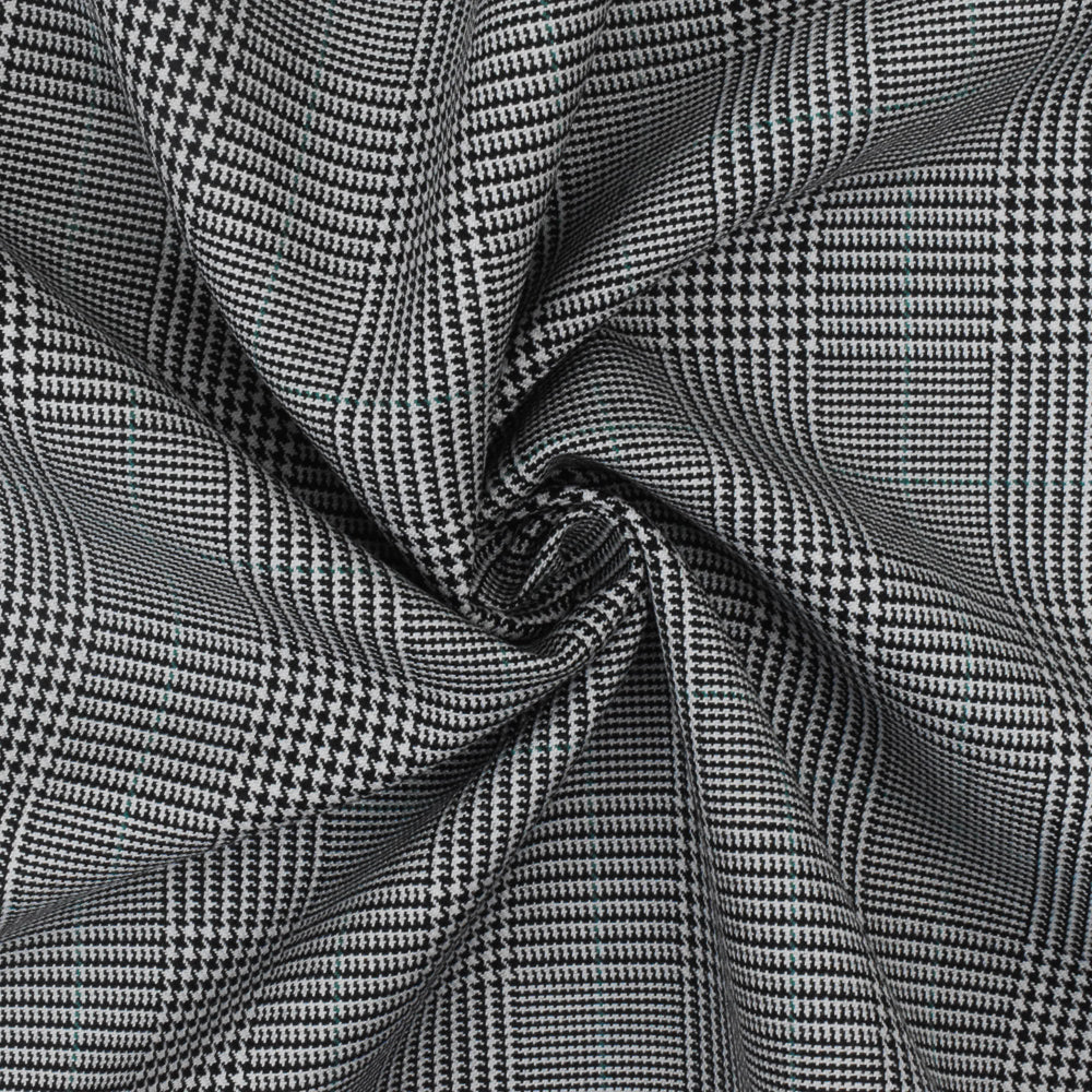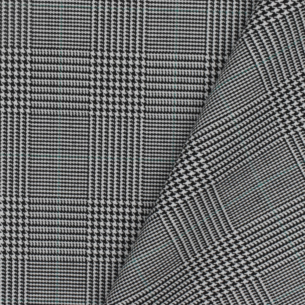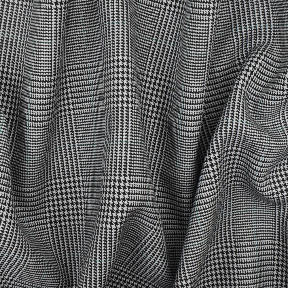 Light Gray-Black-Green Glen Plaid Wool-Poly Twill Woven Suiting Fabric