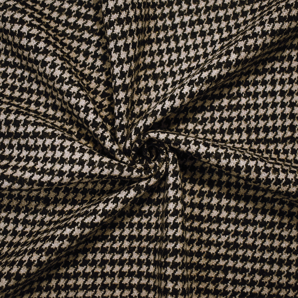 Beige-Black Poly-Rayon Houndstooth Woven Jacketing Fabric