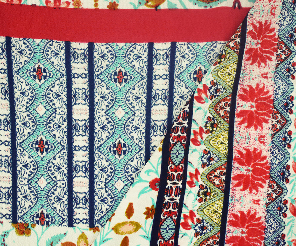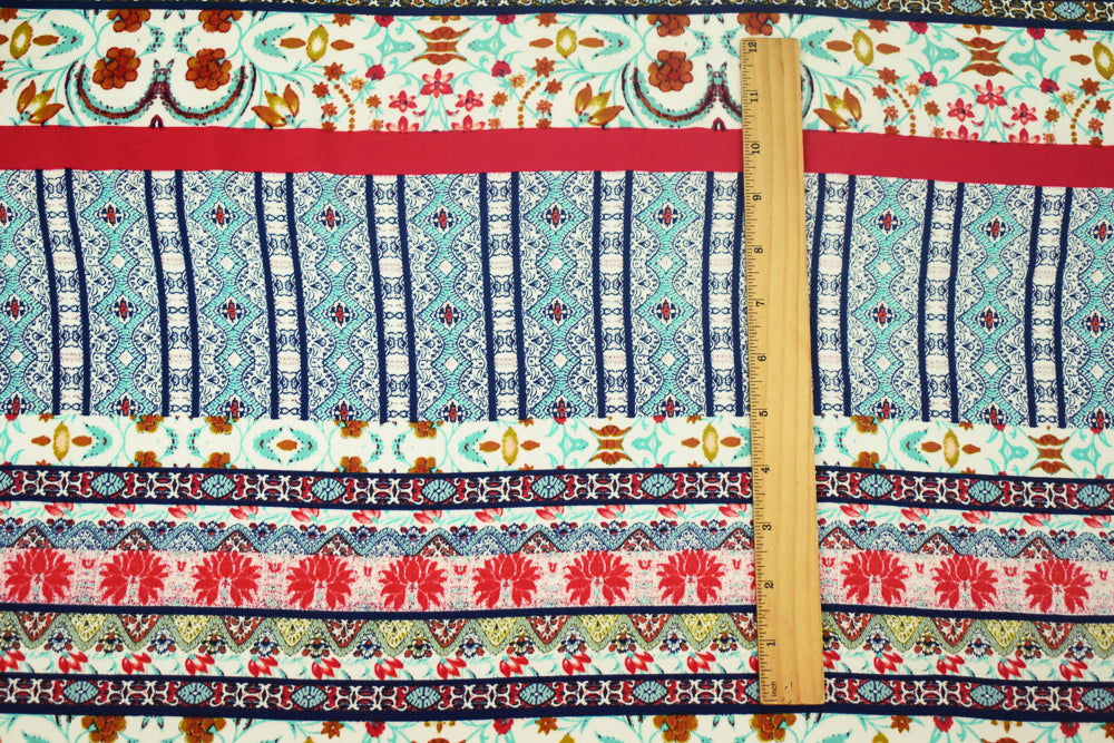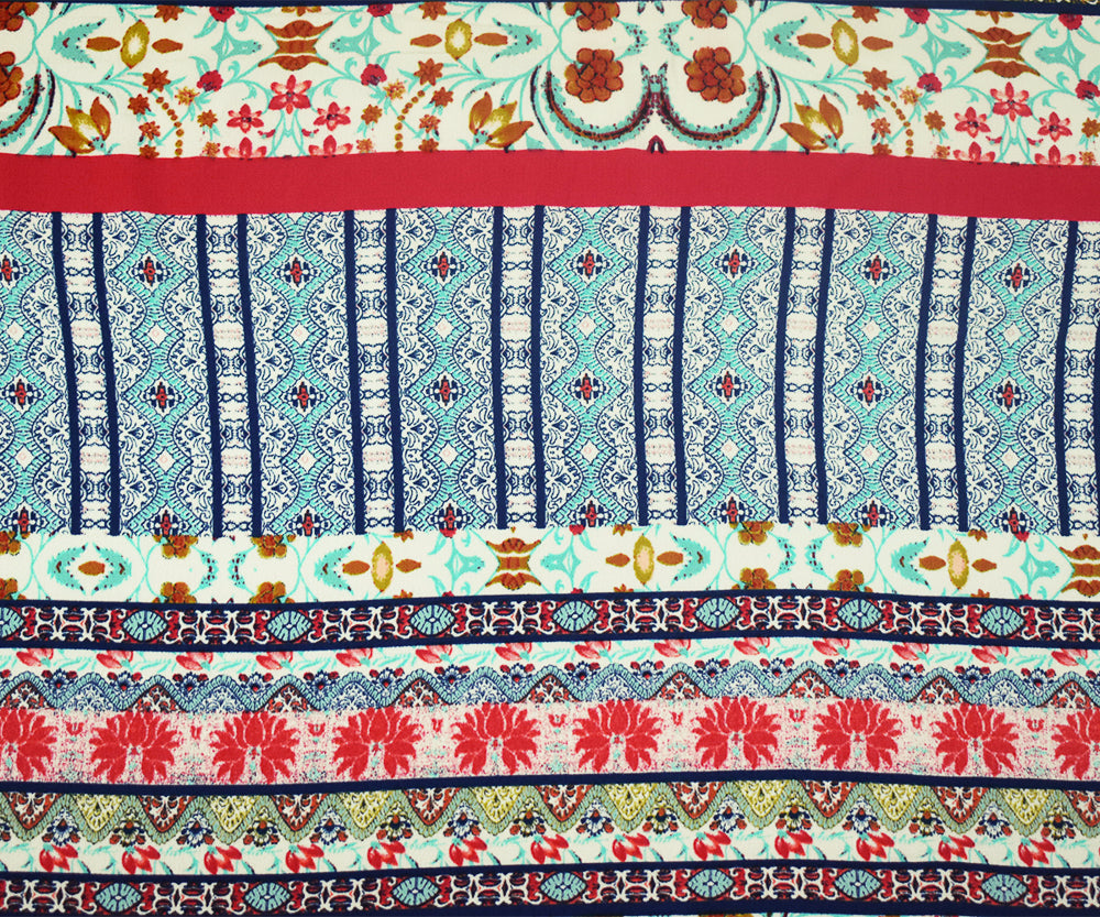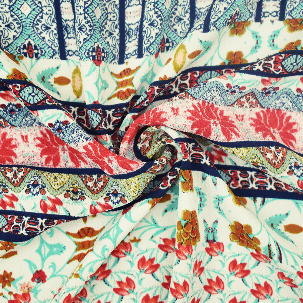 Blue-Multi Stripe Printed Stretch Poly Spandex Ghost Crepe Woven Fabric