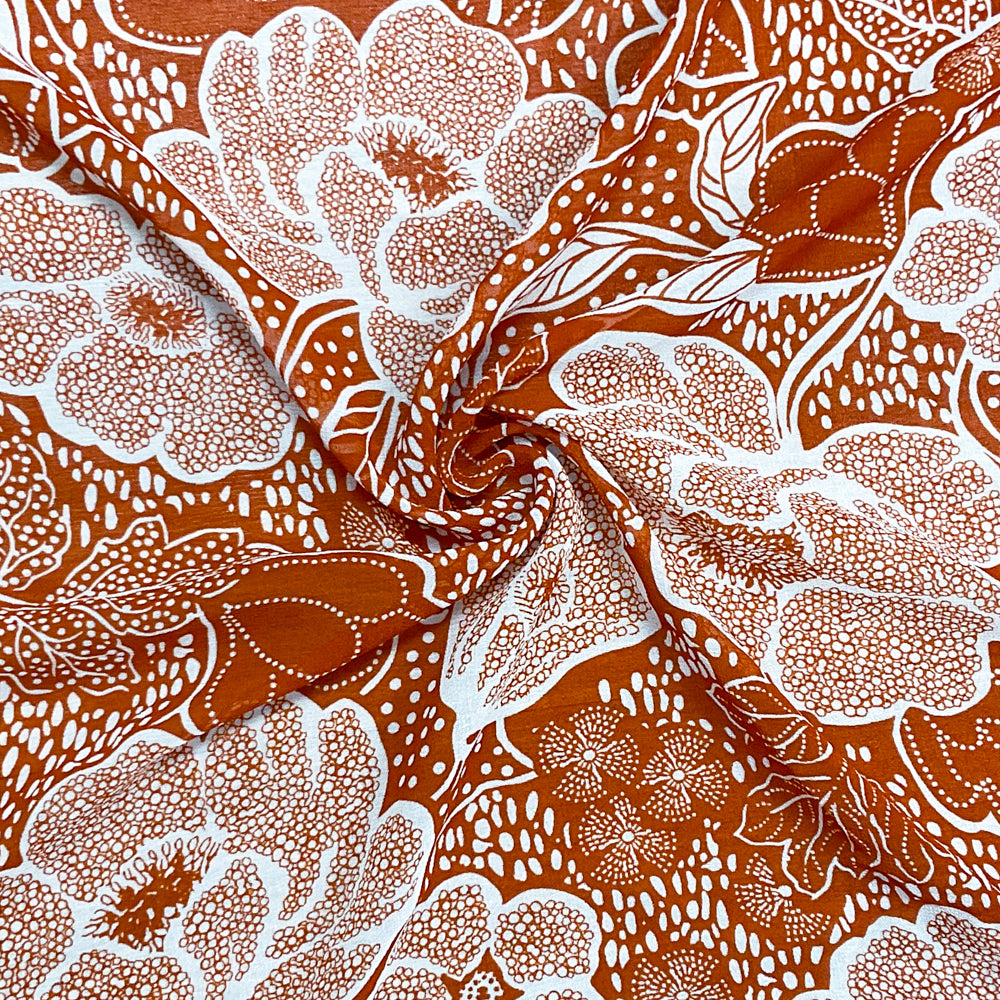 Brown-White Poly Floral Printed Chiffon Woven Fabric